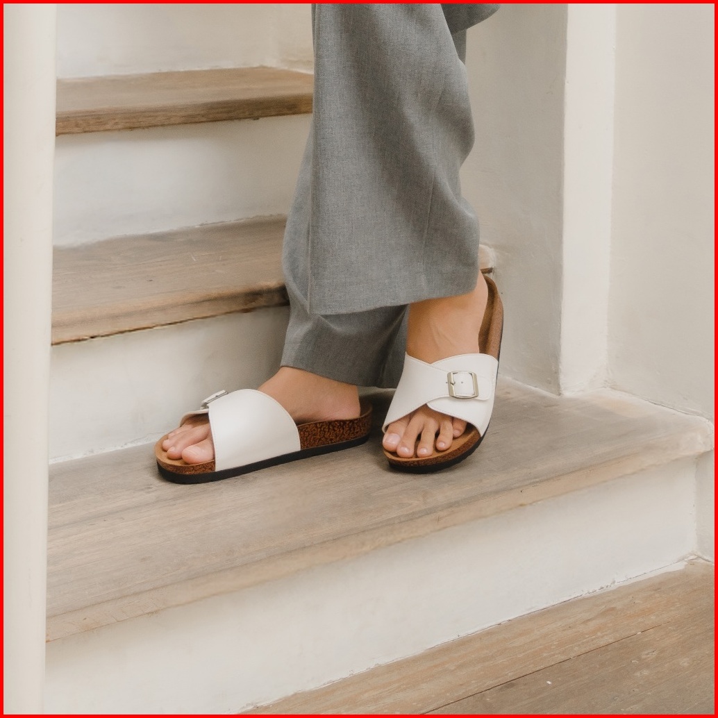Urnam Sandal Slop Wanita Flat Kasual Nyaman - White