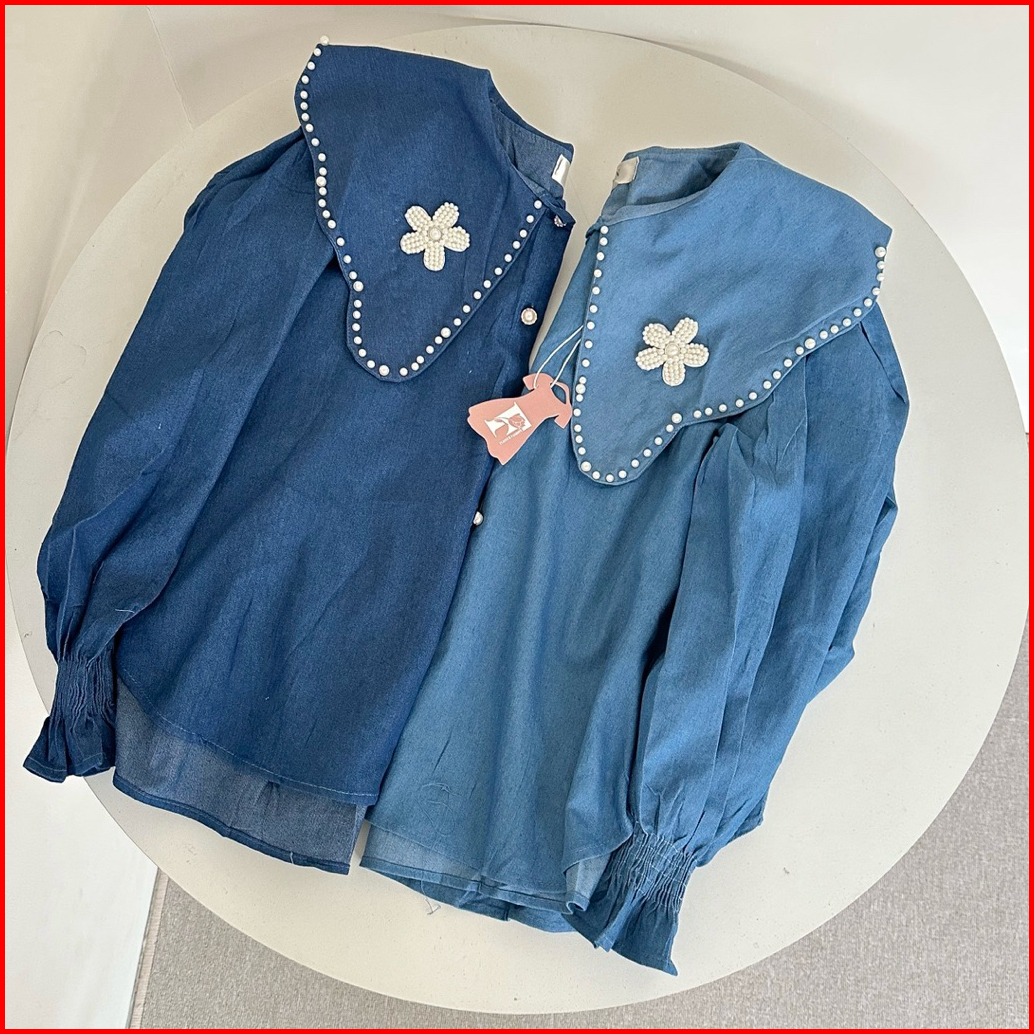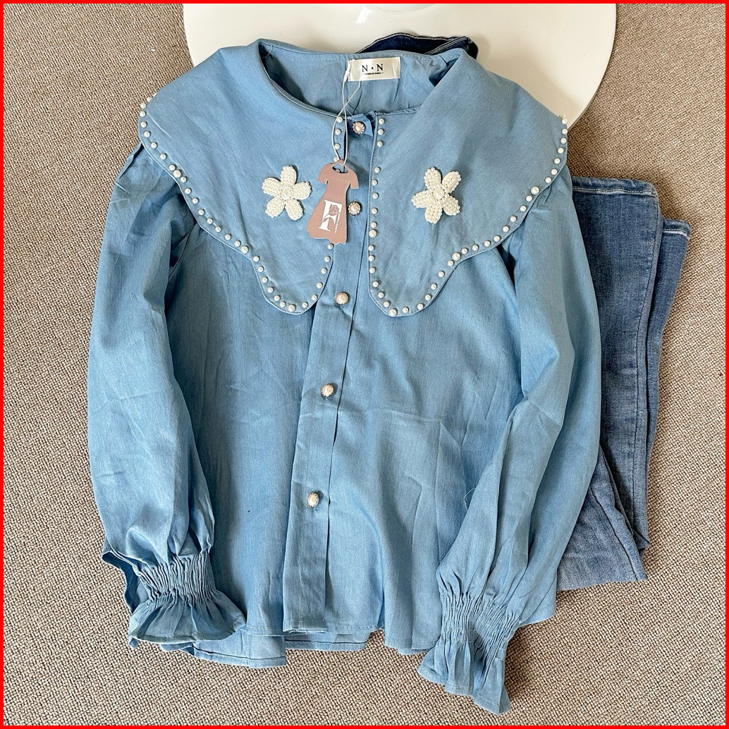Kemeja Jeans Wanita Lengan Panjang Denim Katun Bordir