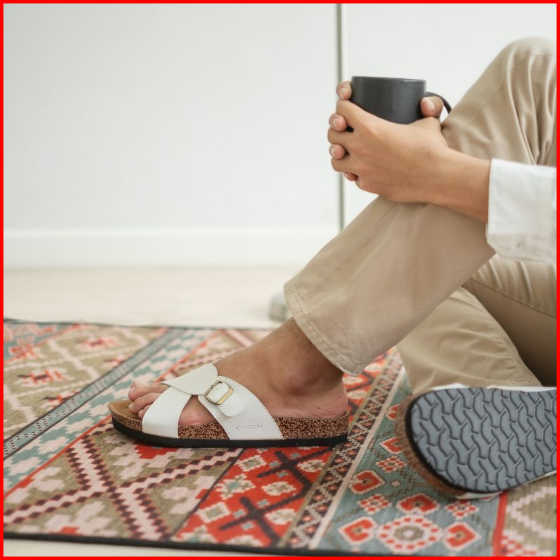 Cogen Sendal Kulit Pria Sandal Birken Vintage - Kastel White