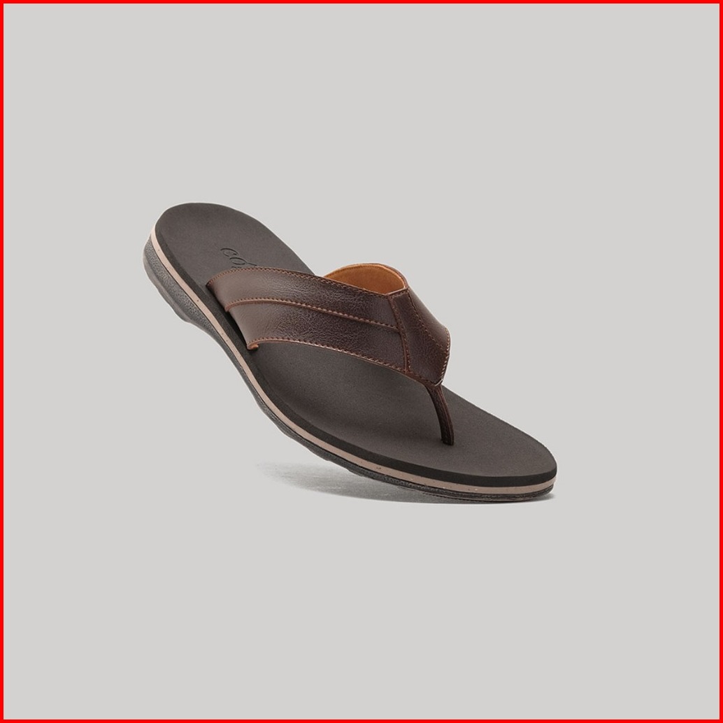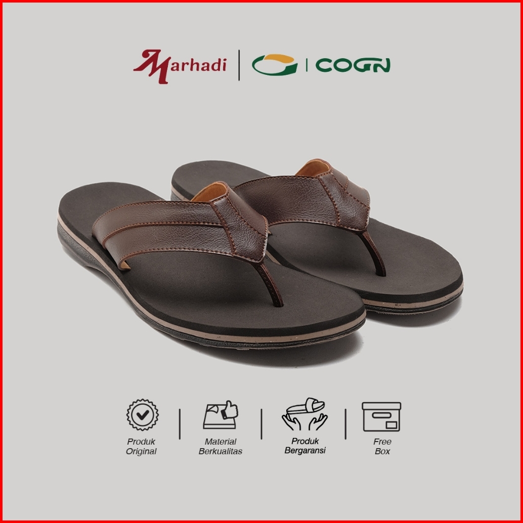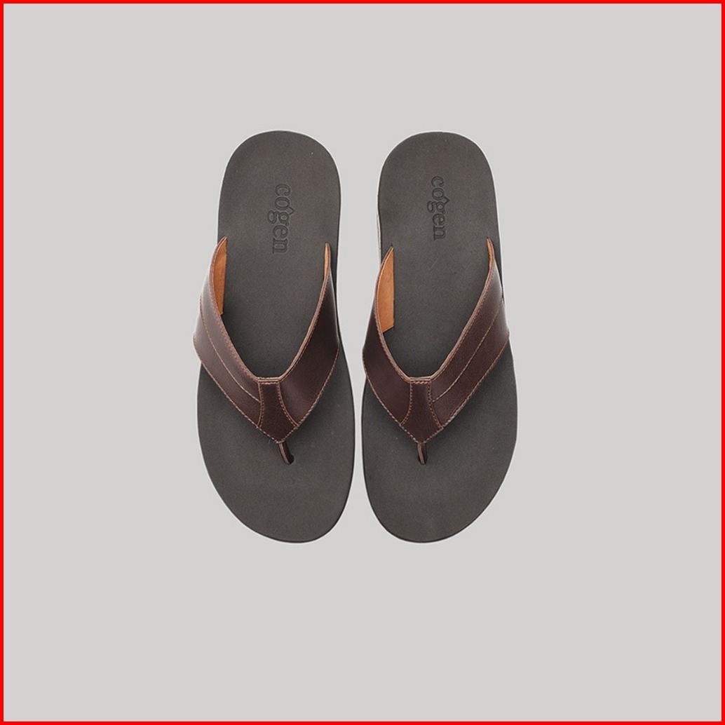 Cogen Sandal Jepit Kulit Pria Sendal Cowok Flip Flop Marino Mr01 Leather - Brown