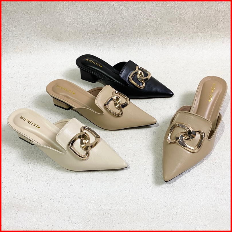 Wishlist Sandal Sepatu Mules Heels Wanita 4cm Safire
