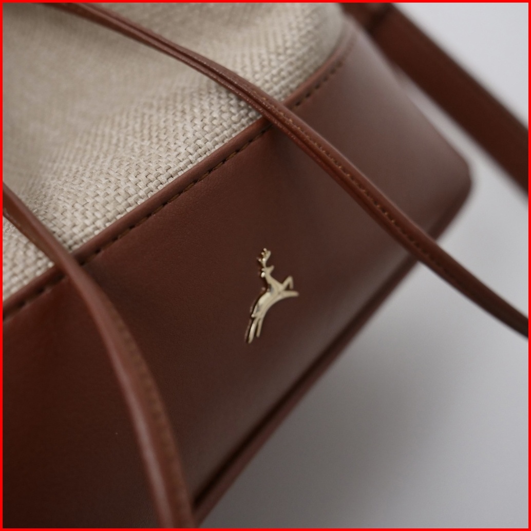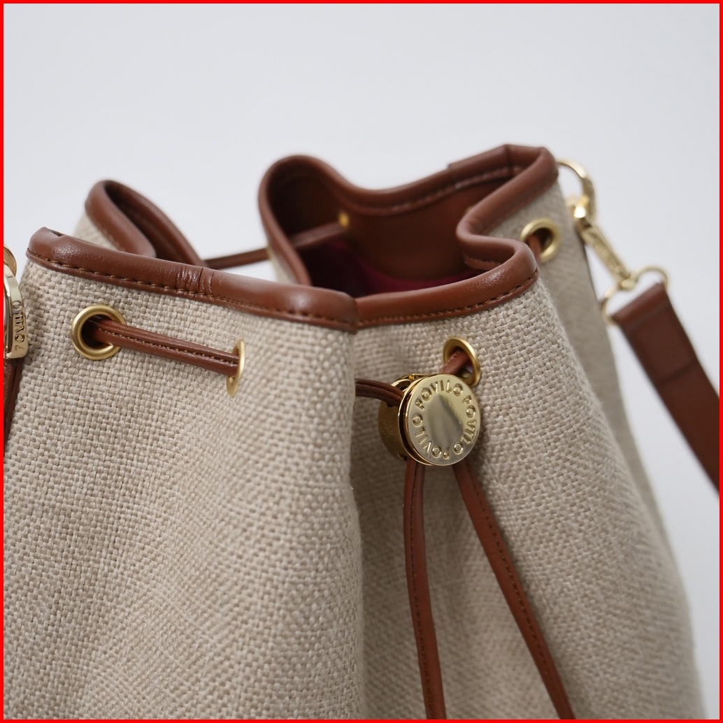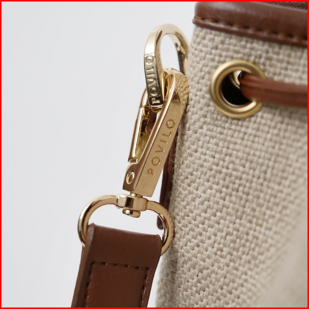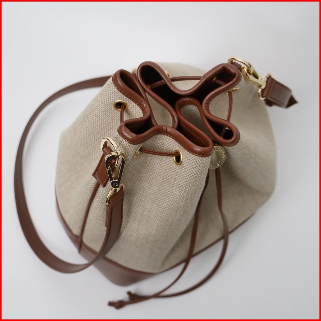 Povilo Puspa Bucket Bag Beige Kanvas Kulit