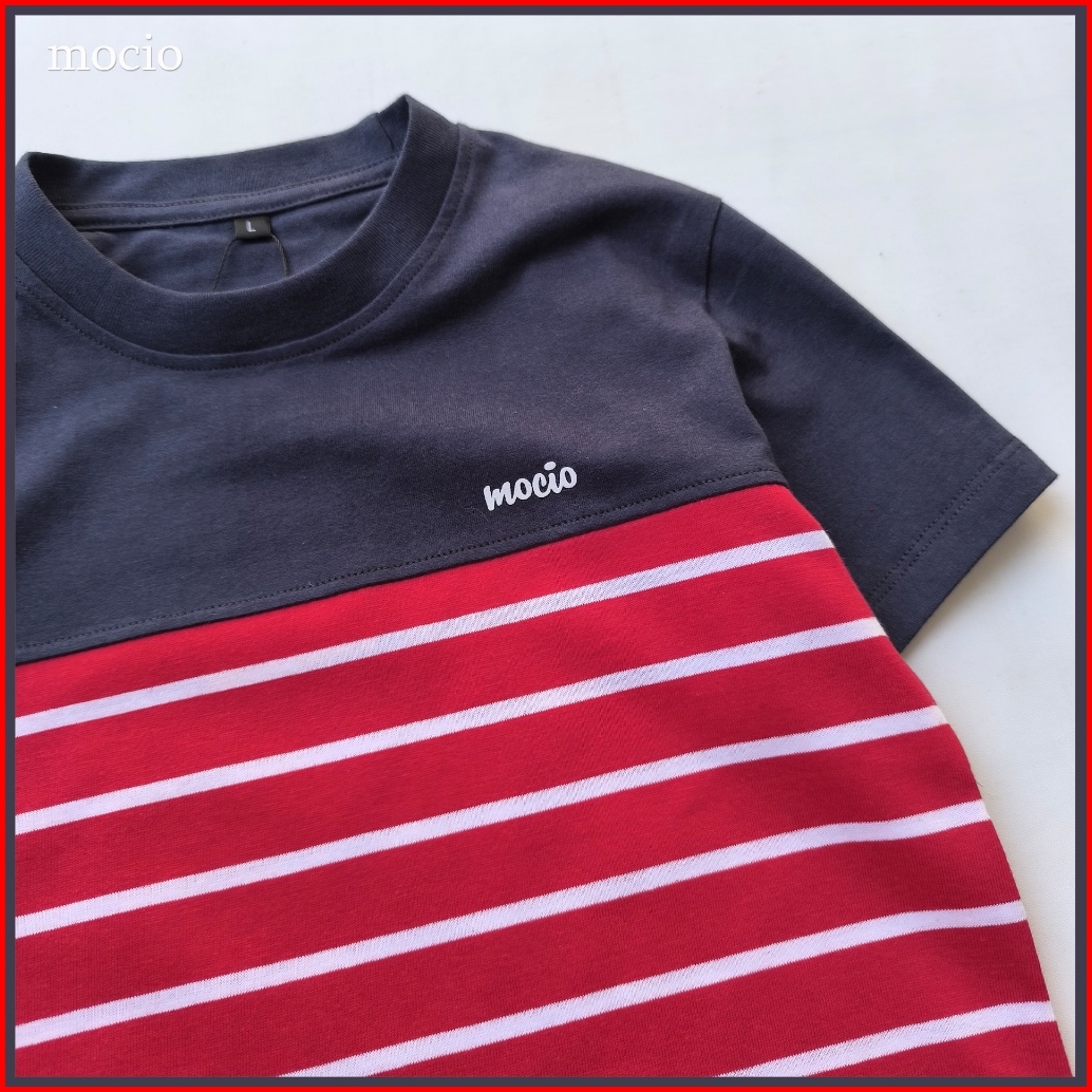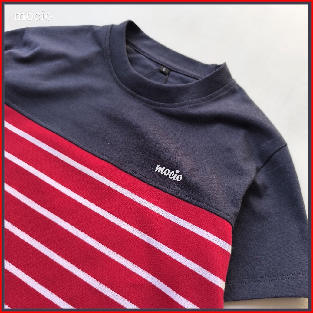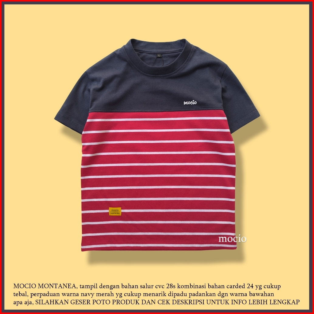 Mocio Montanea - Usia 1-12th - Kaos Distro Anak Laki Laki Motif Salur Stripe - Baju Kaos Anak Salur