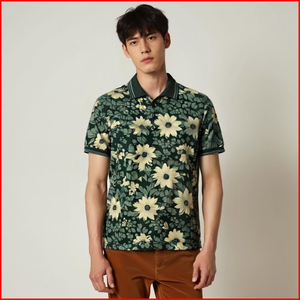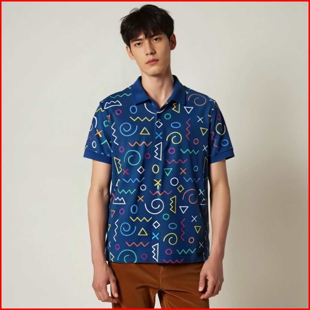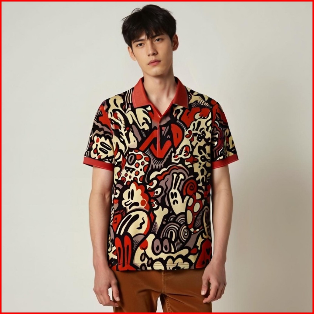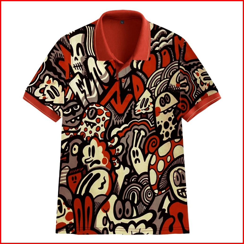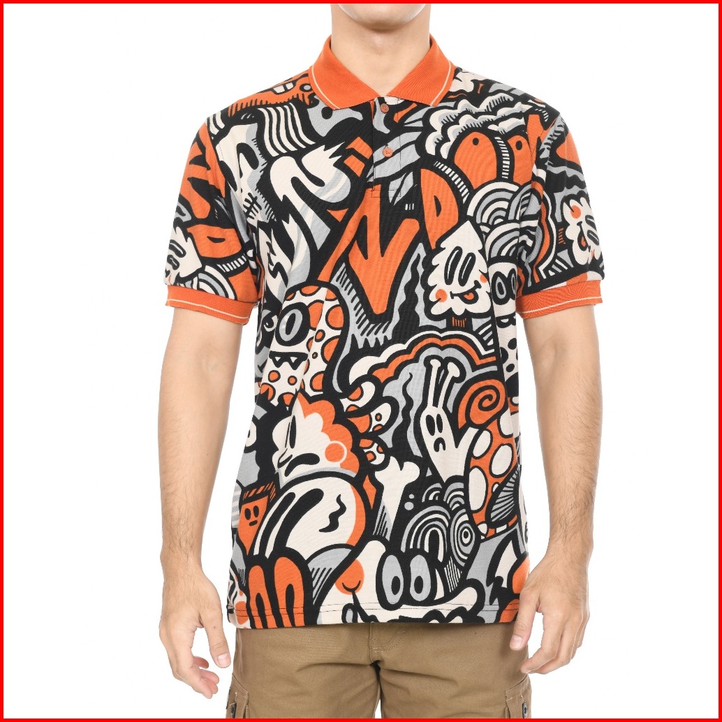 Kaos Poloshirt Pria Fullprint Motif Cute Doodle Monster Lengan Pendek