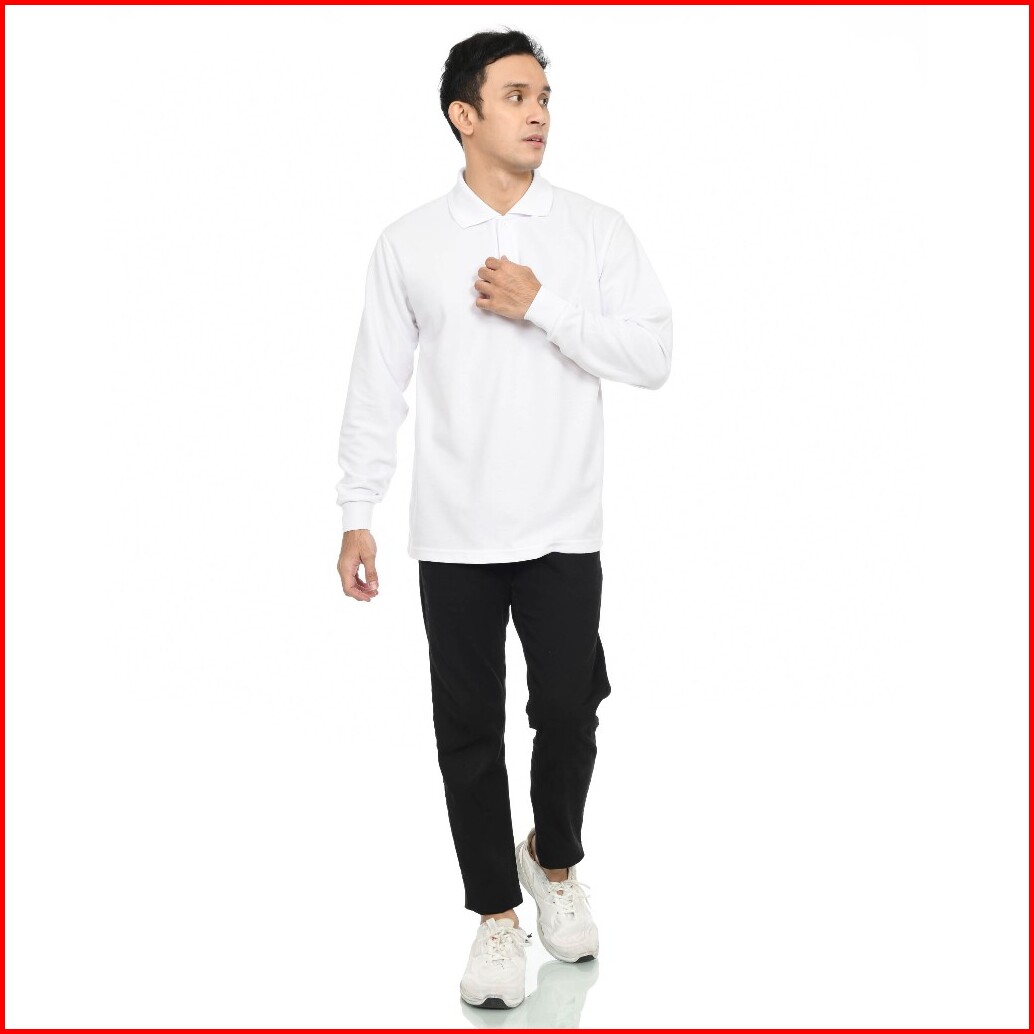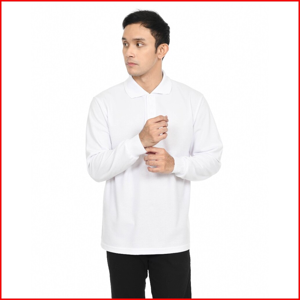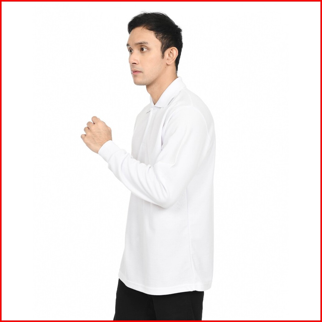 Kaos Polo Pria Lengan Panjang Putih Kaos Kerah Polos Lengan Panjang