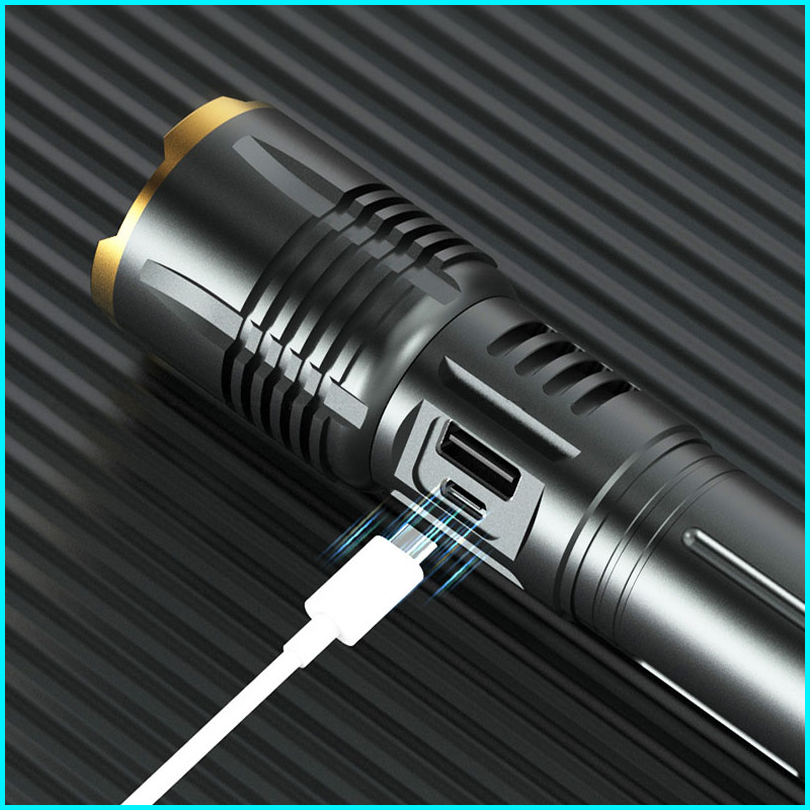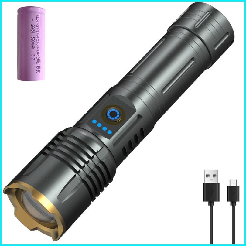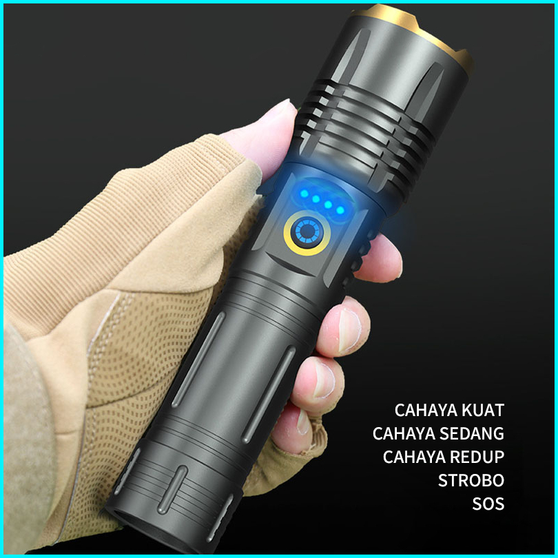 Senter Led Super Terang 5000 Zoom Flashlight Usb C Type-c 26650 Rechargeable Ipx6 Tahan Air
