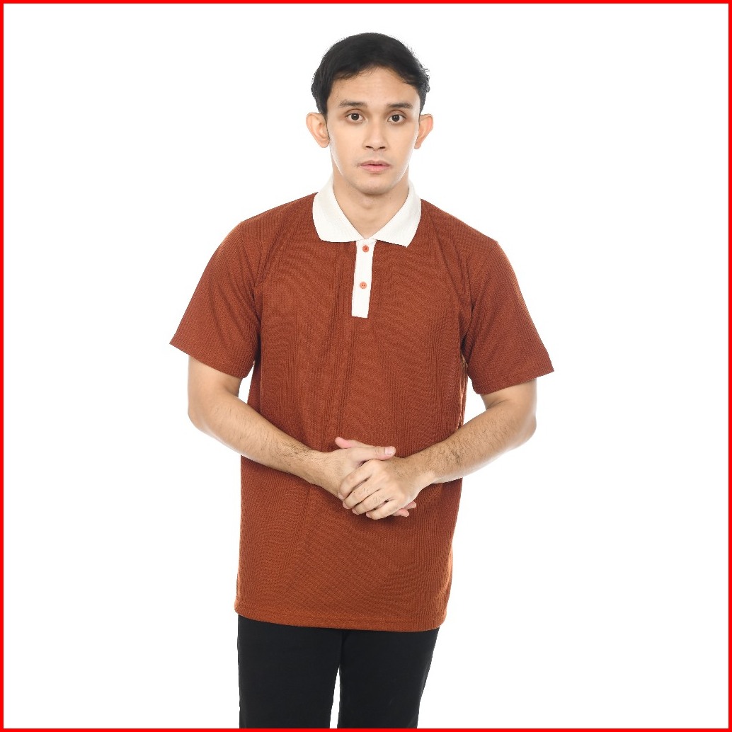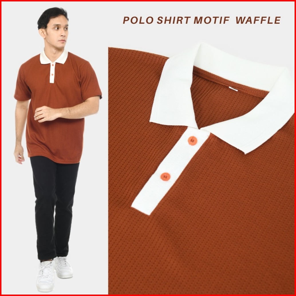Kemeja Polo Shirt Motif Waffle Kerah Kombinasi Lengan Pendek