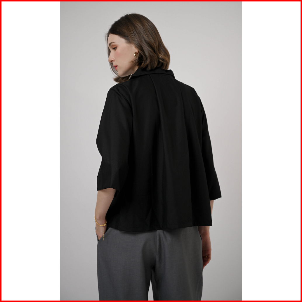 Mia Studio - Josephine Shirt Black Atasan Kemeja Kerah Miring Wanita Cotton Hitam