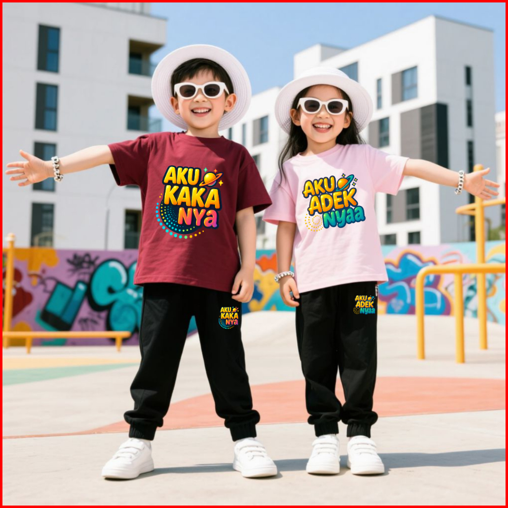 Setelan Anak Celana Jogger 5-15 Tahun Motif Kaka Adek