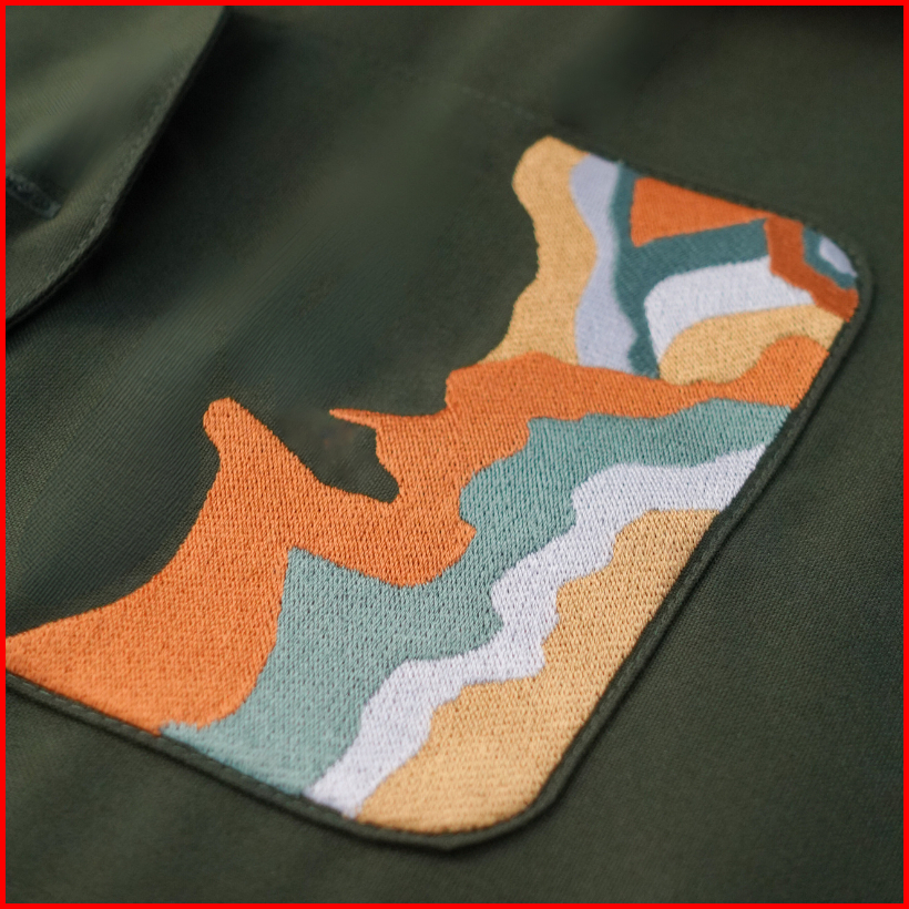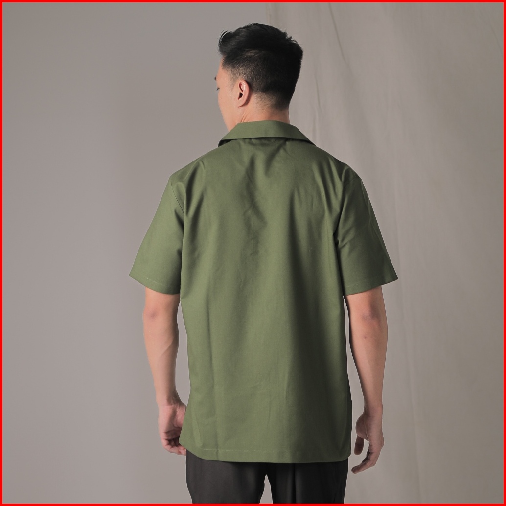 Kemeja Pria Lengan Pendek Premium Motif Ombak Bordir Kantong Glacier Army Green By Kinkami