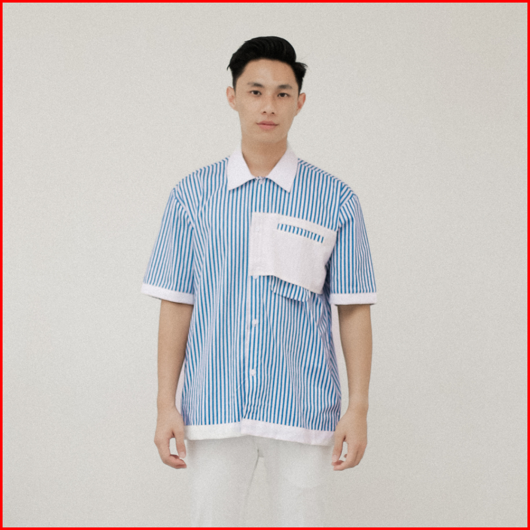 Kemeja Pria Lengan Pendek Premium Motif Garis-garis Stripes Oasis Sage Green By Kinkami