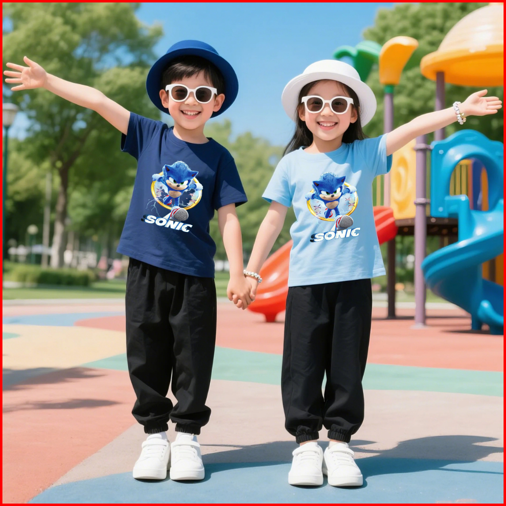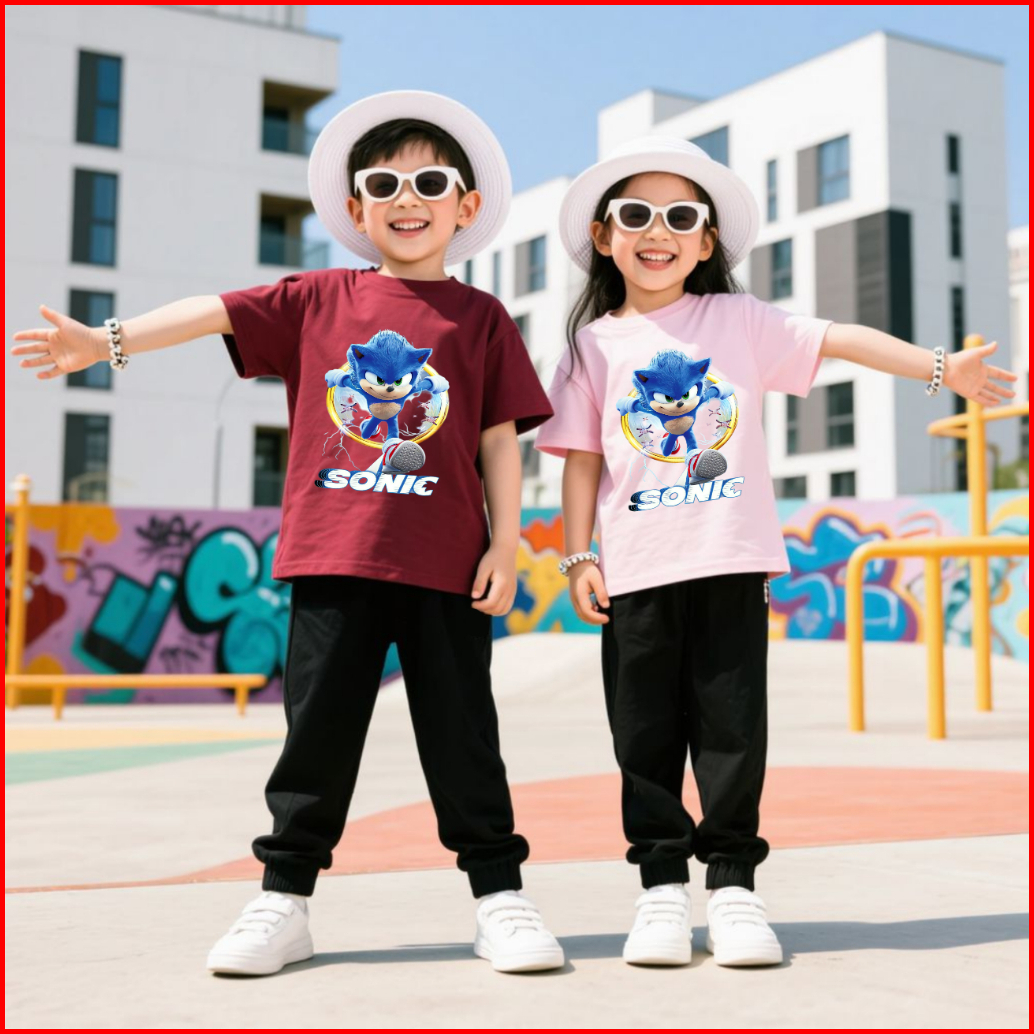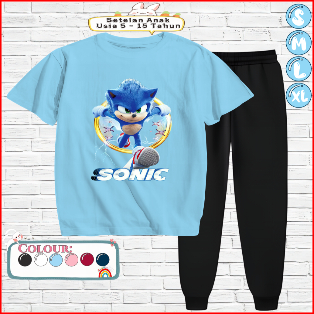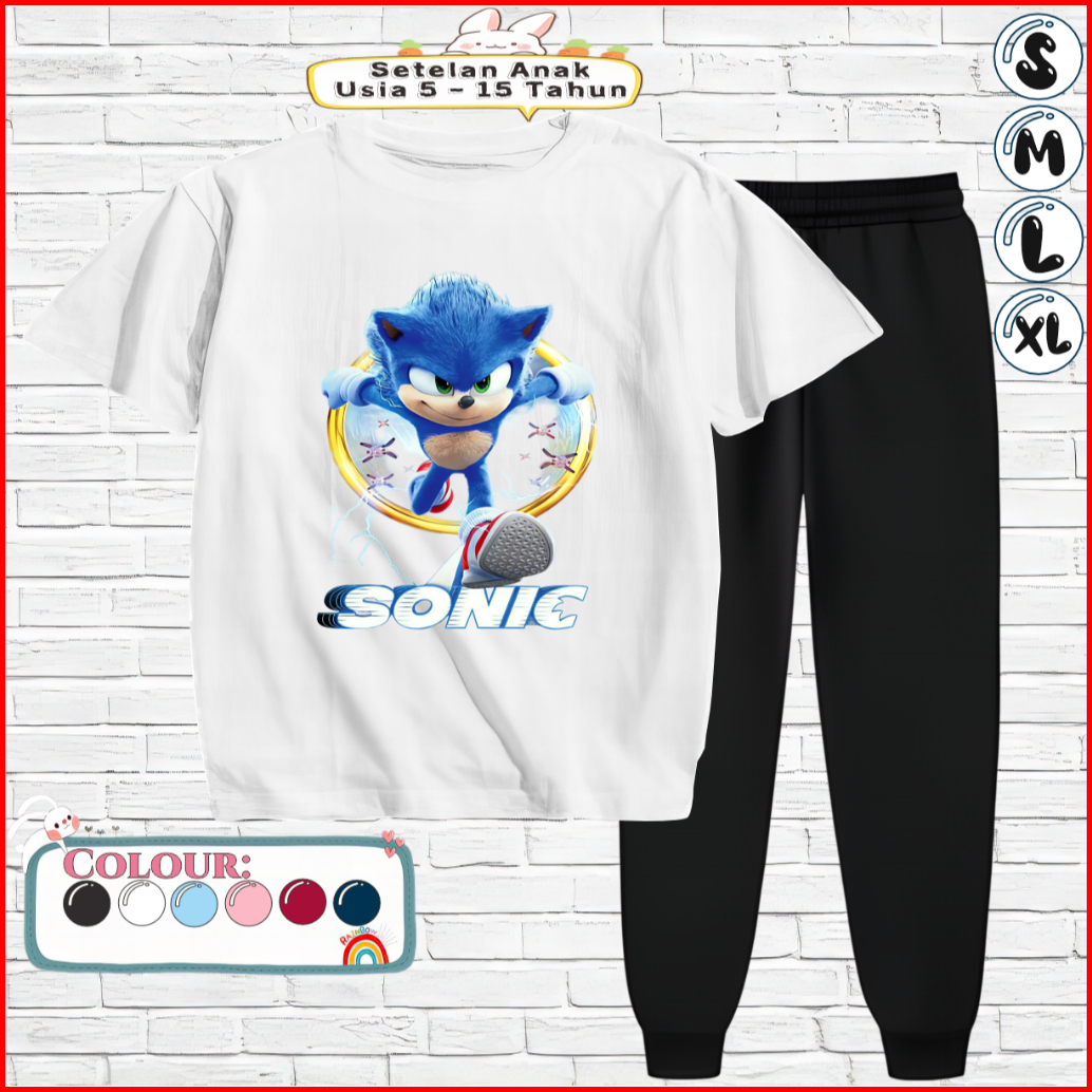 Baju Setelan Anak Kaos Dan Celana Jogger 5-15 Tahun Motif Sonic Ring