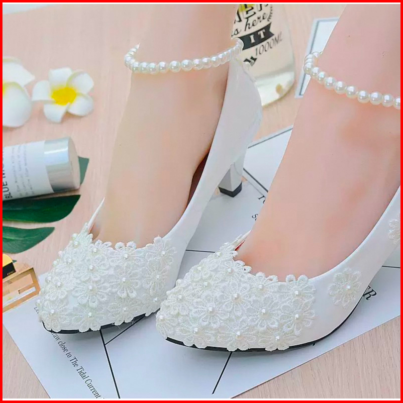Heels Putih Pesta Ib05 Sintetis Hak 5cm