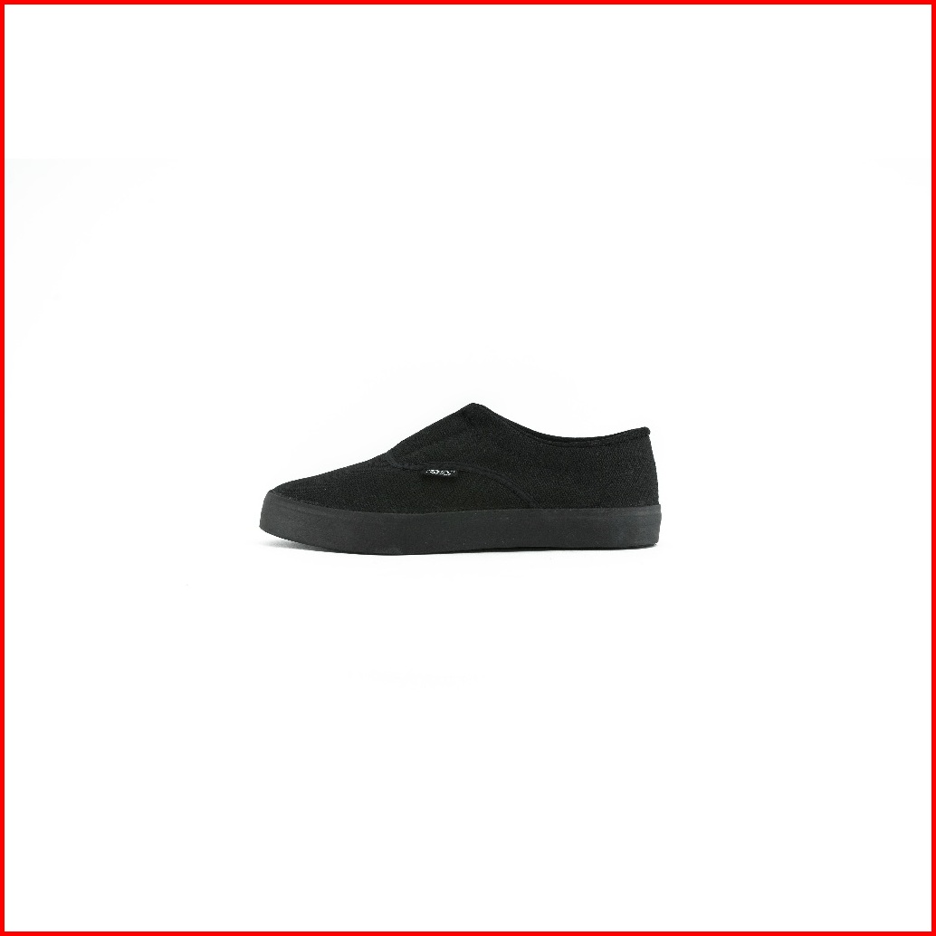 Girvi 7300 Sepatu Sekolah Jass Kanvas Vulcanized Slip On Hitam Polos Ukuran 3742