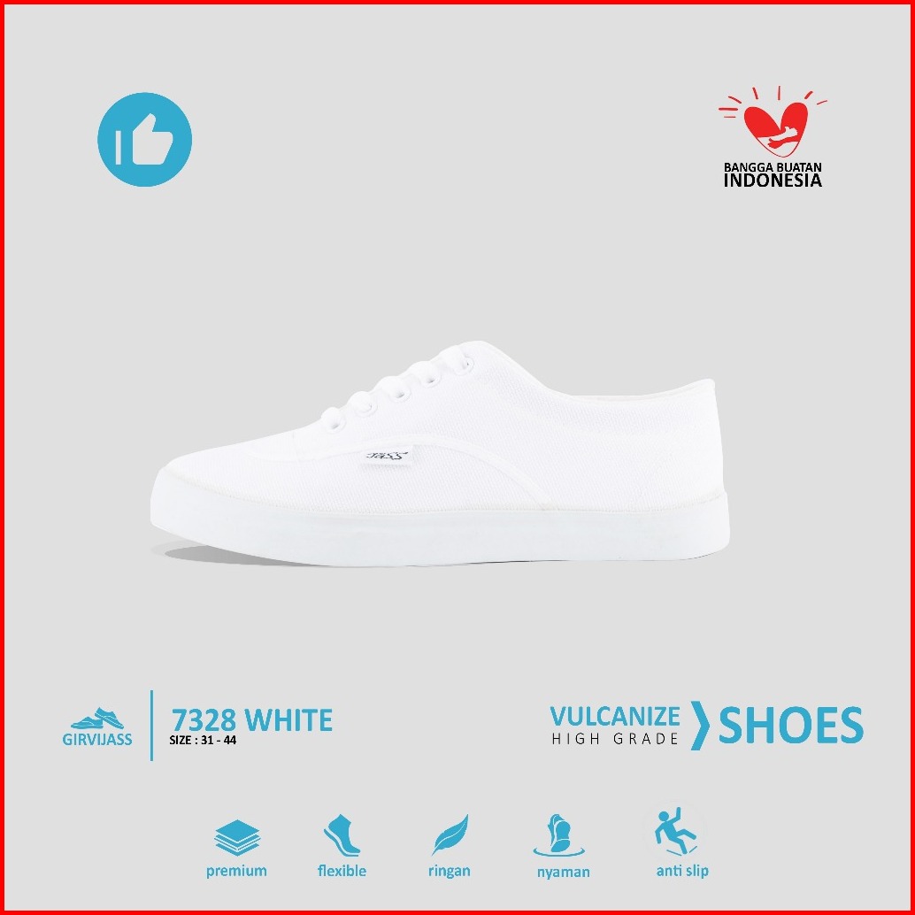 Girvi 7328 Sepatu Jass Kanvas Vulcanized Bertali Putih Polos Ukuran 3742