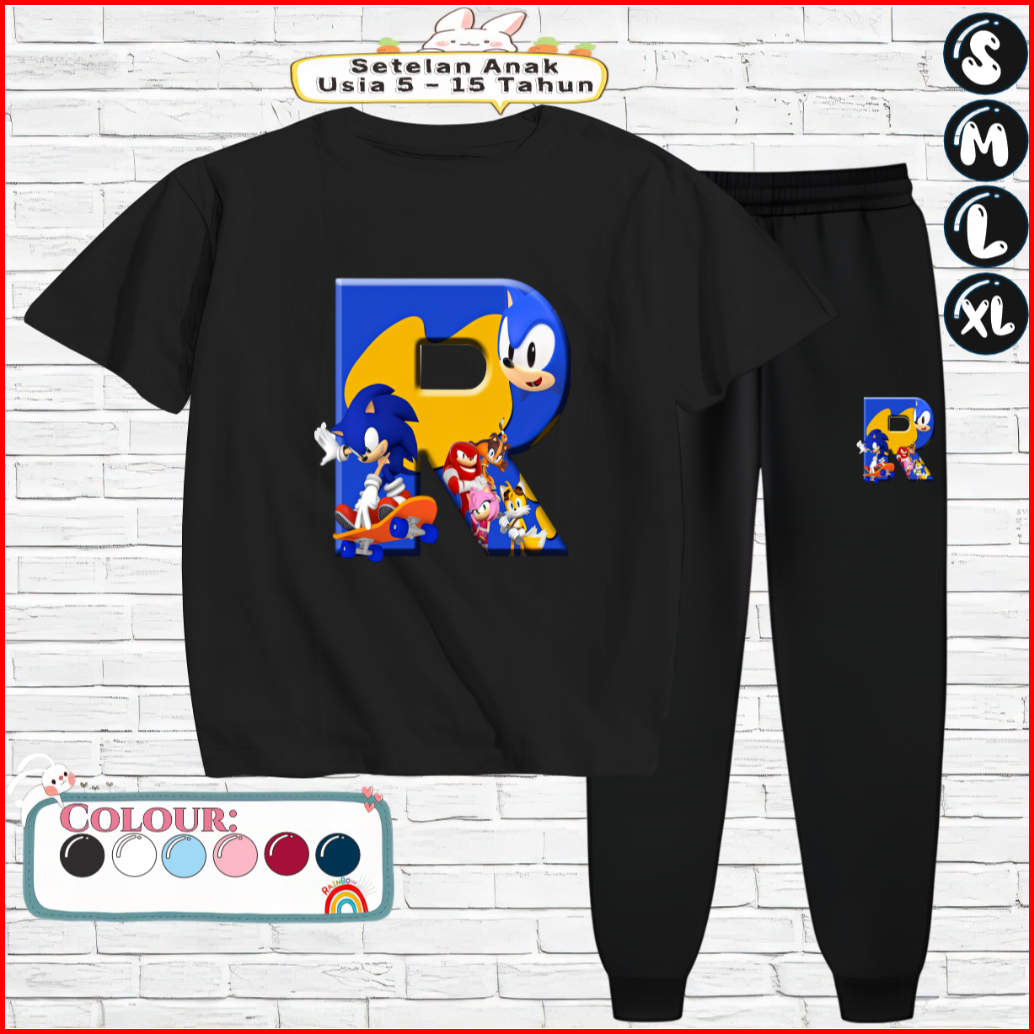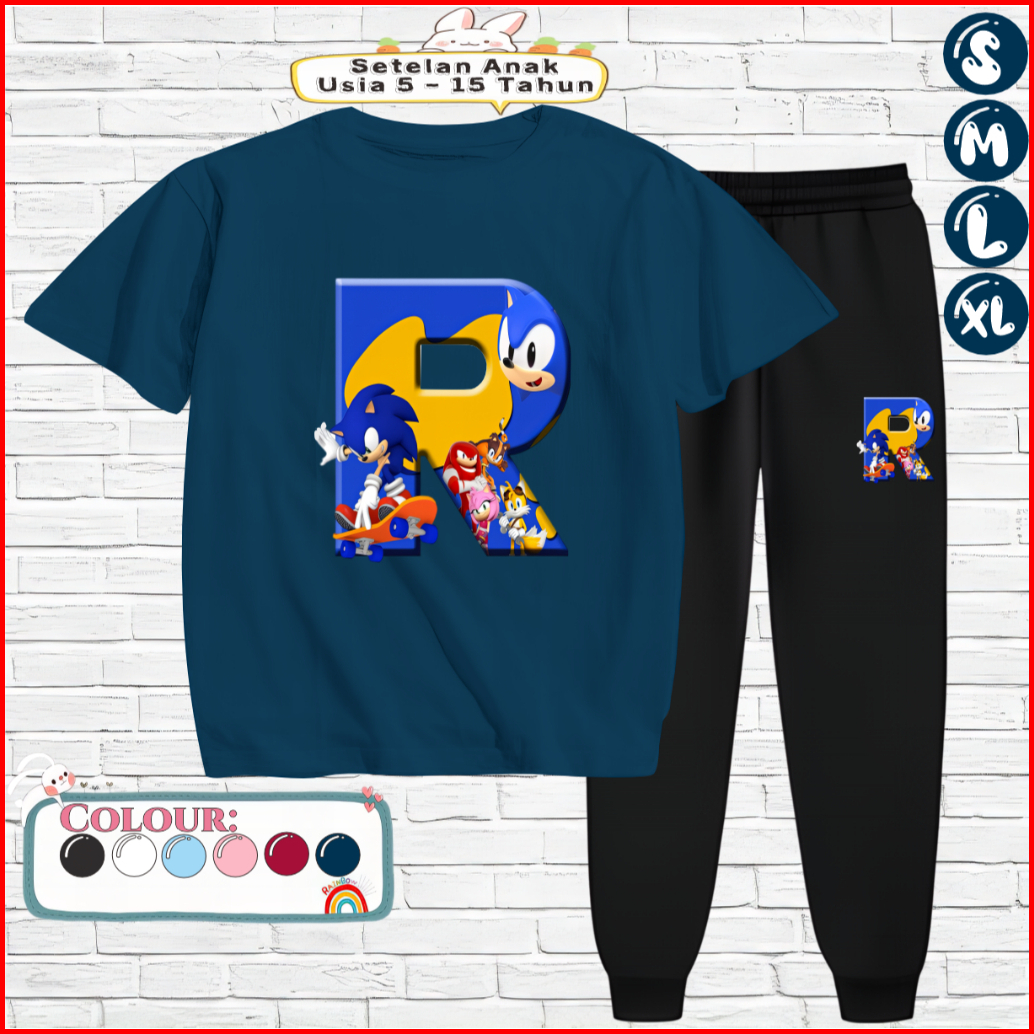Setelan Anak Kaos Dan Celana Jogger 5-15 Tahun Motif Sonic R