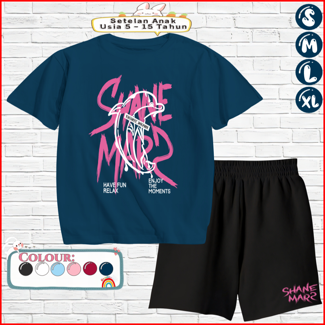 Baju Setelan Anak Kaos Dan Celana Pendek 5-15 Tahun Motif Dolphin