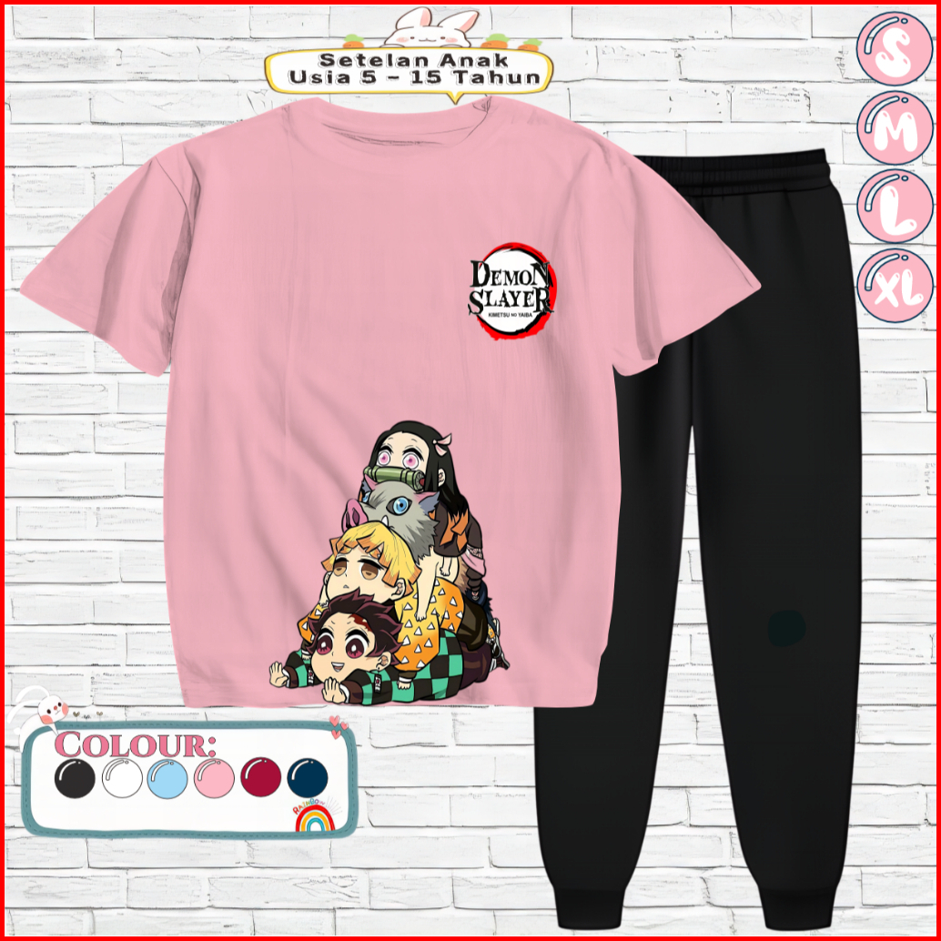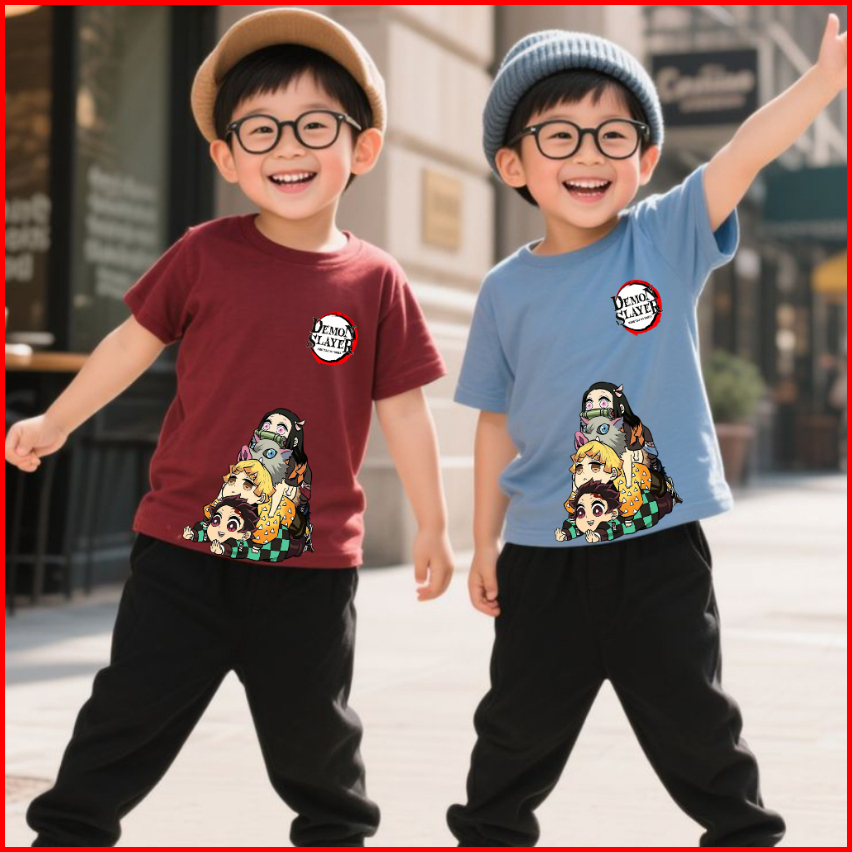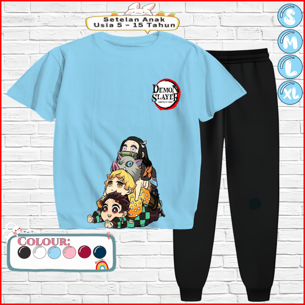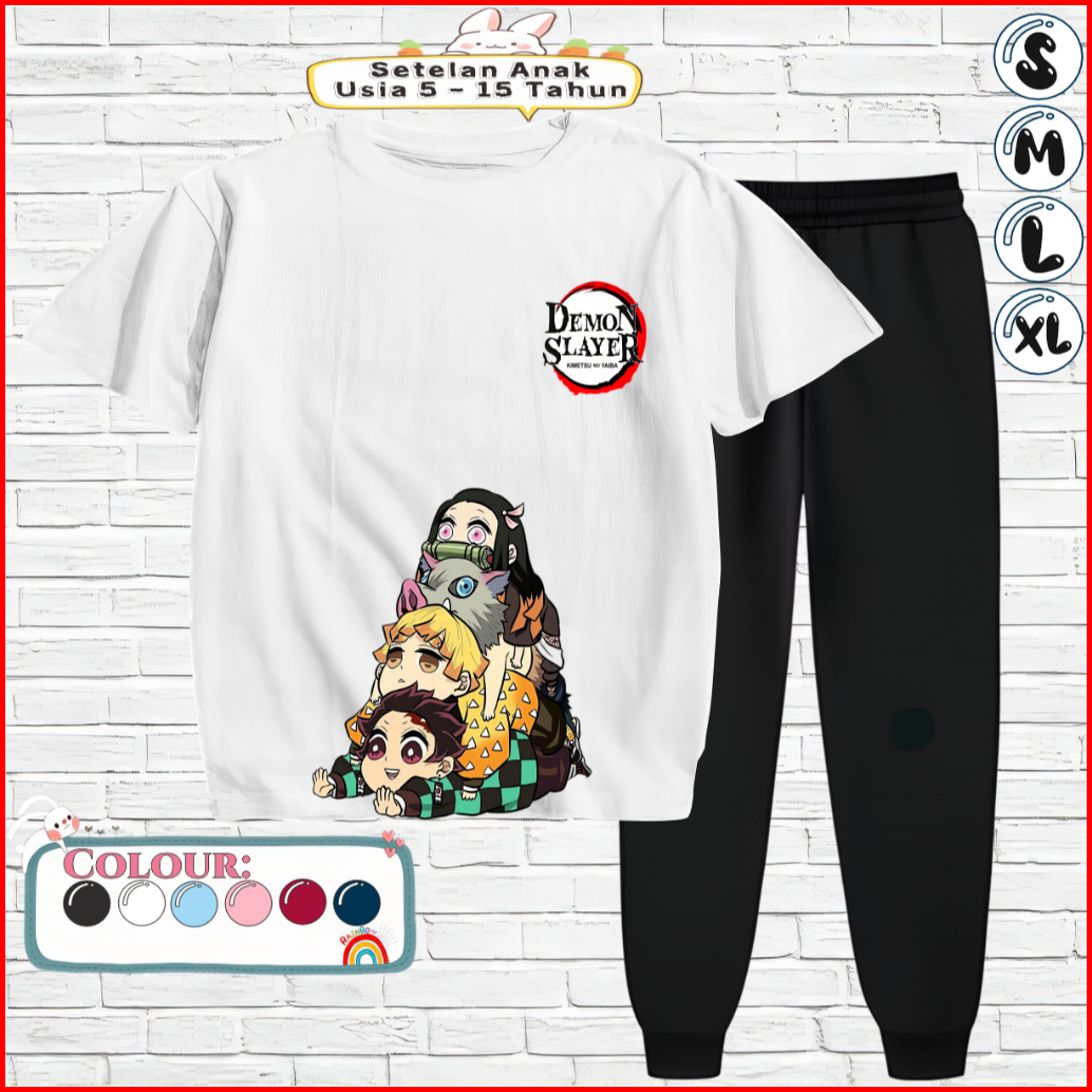 Setelan Kaos Anak Laki Laki Celana Jogger 5-15 Tahun Motif Baby Demon Slayer