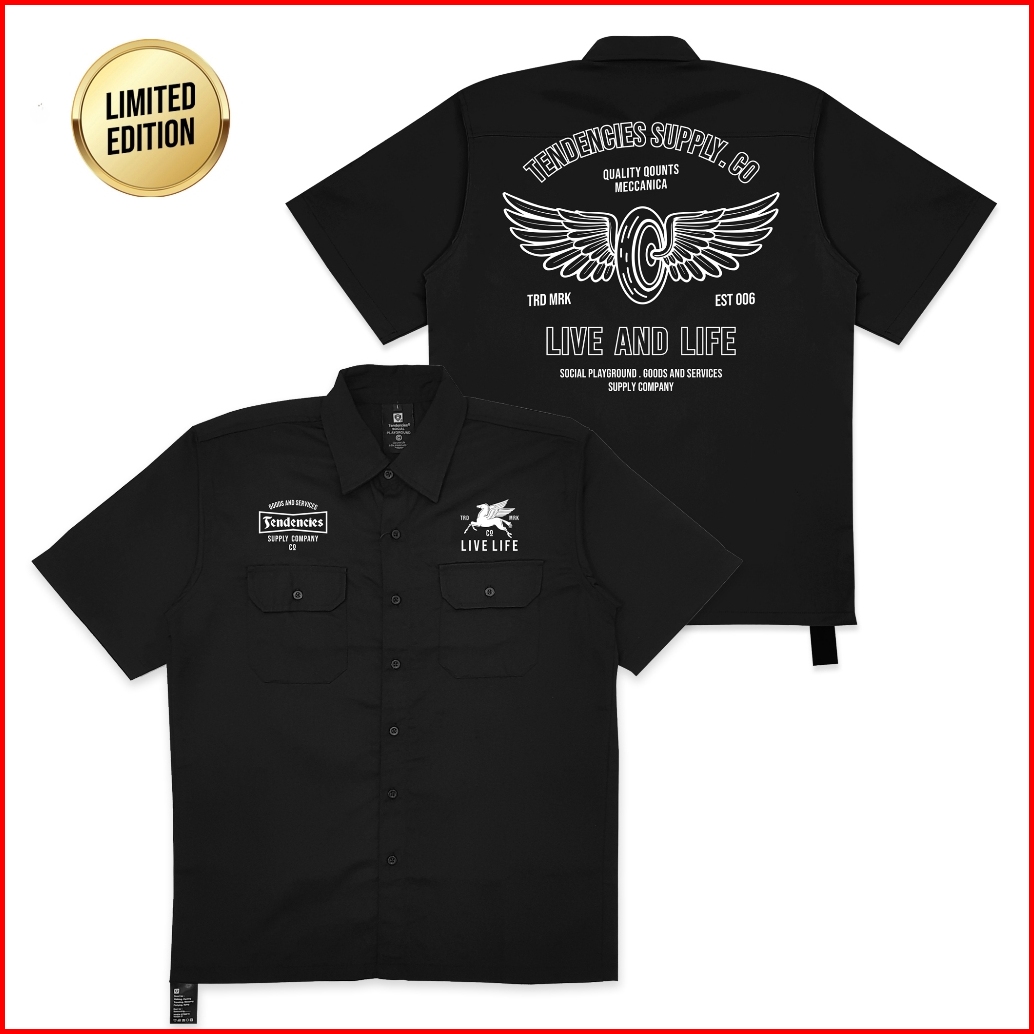 Tendencies Wings Garage Work Shirt Black Kemeja Kerja Pdh
