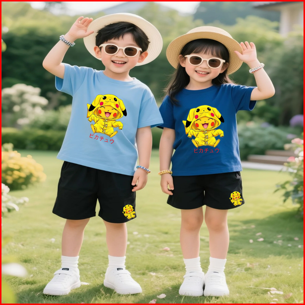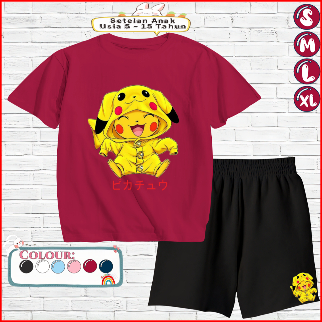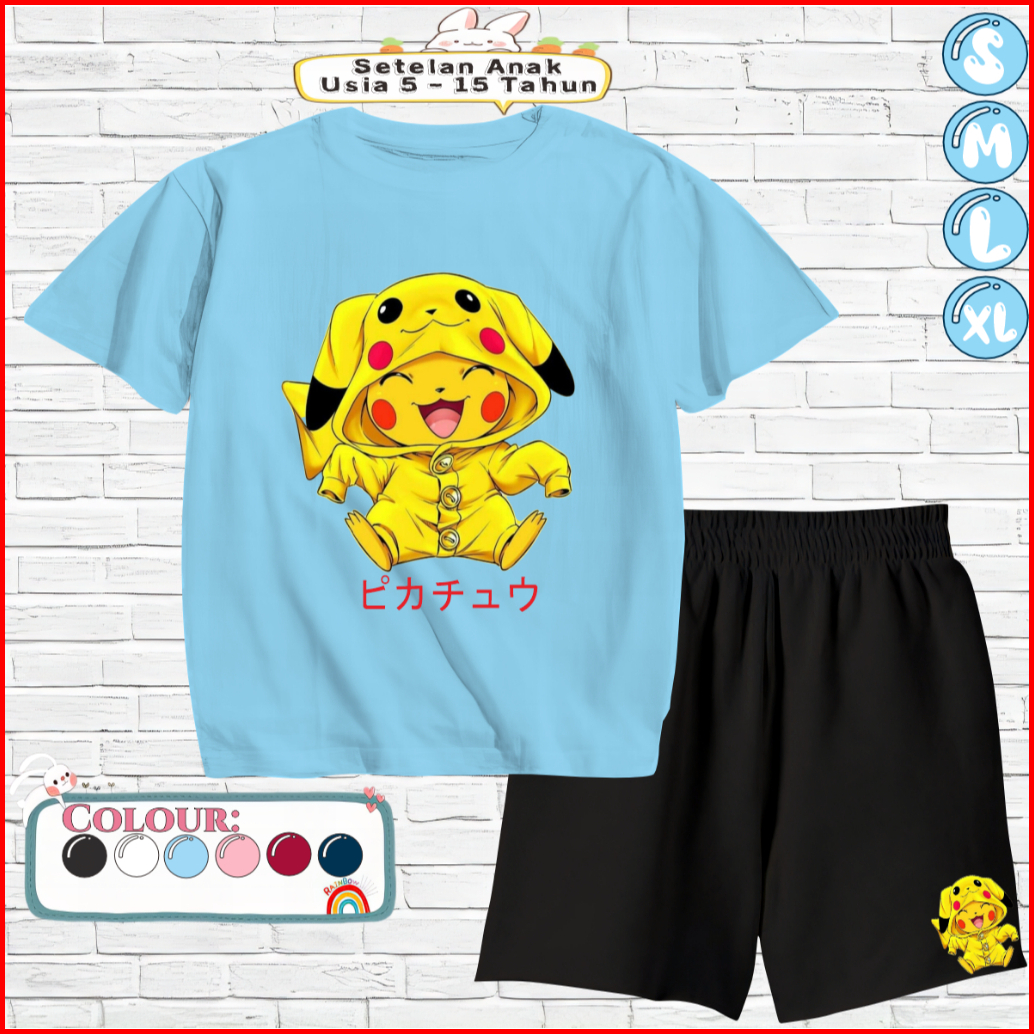 Setelan Anak Celana Pendek 5-15 Tahun Motif Pikacu