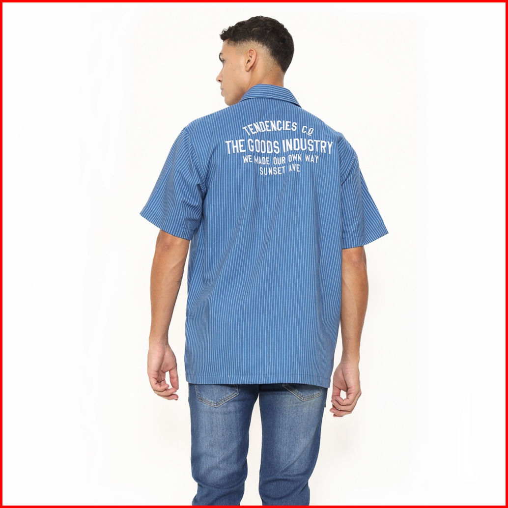 Tendencies Blue Stripe Sunset Industry Work Shirt Kemeja Kerja Pdh