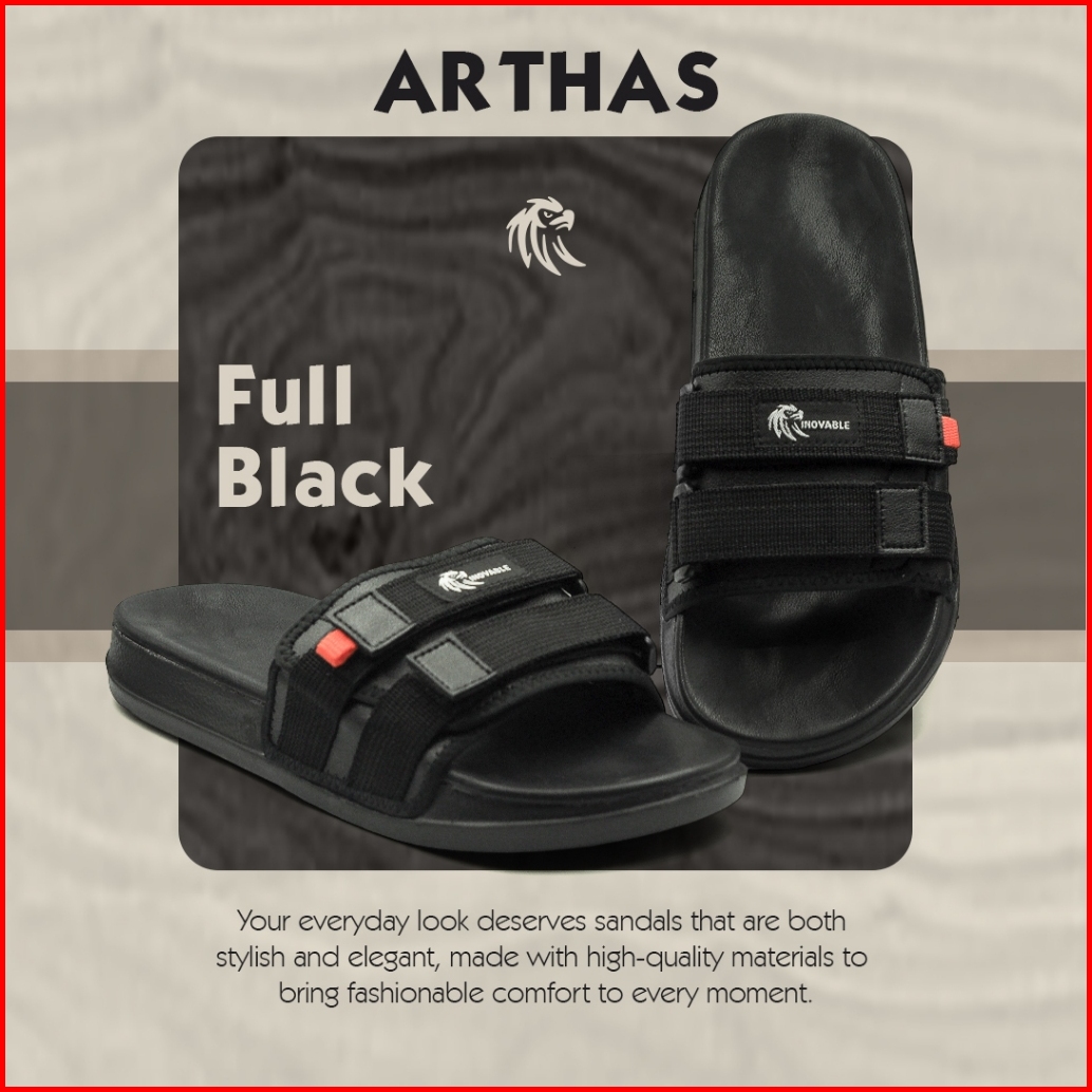 Inovable Sandal Slide Slop Pria Wanita Ringan Nyaman Anti Slip - Arthas Fullblack