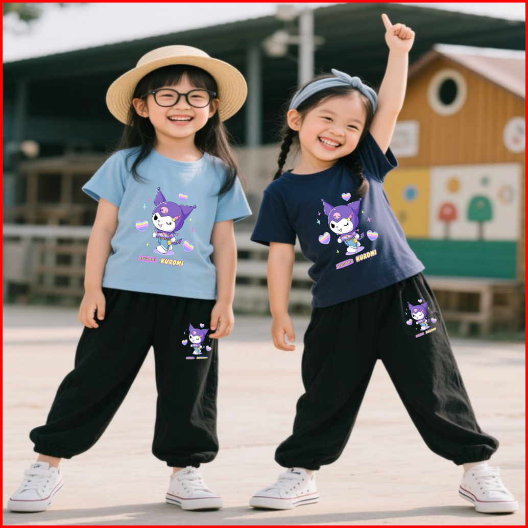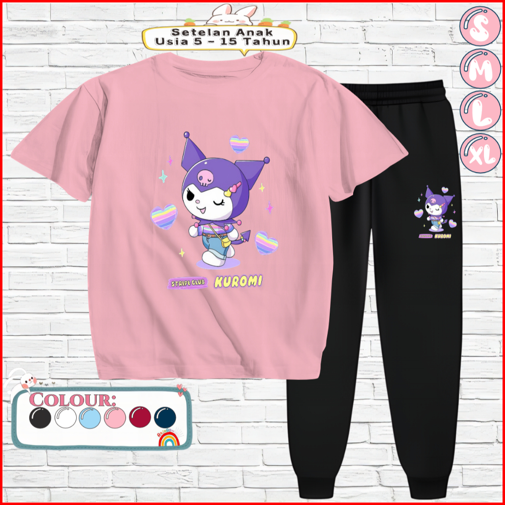 Setelan Anak Perempuan Celana Jogger 5-15 Tahun Motif Stripe Kuromi