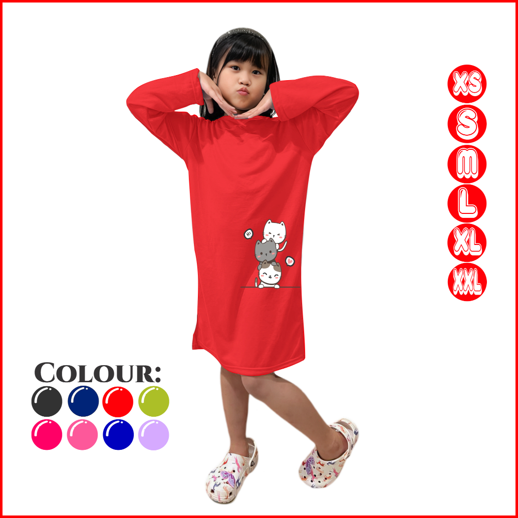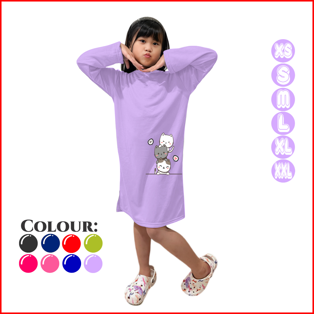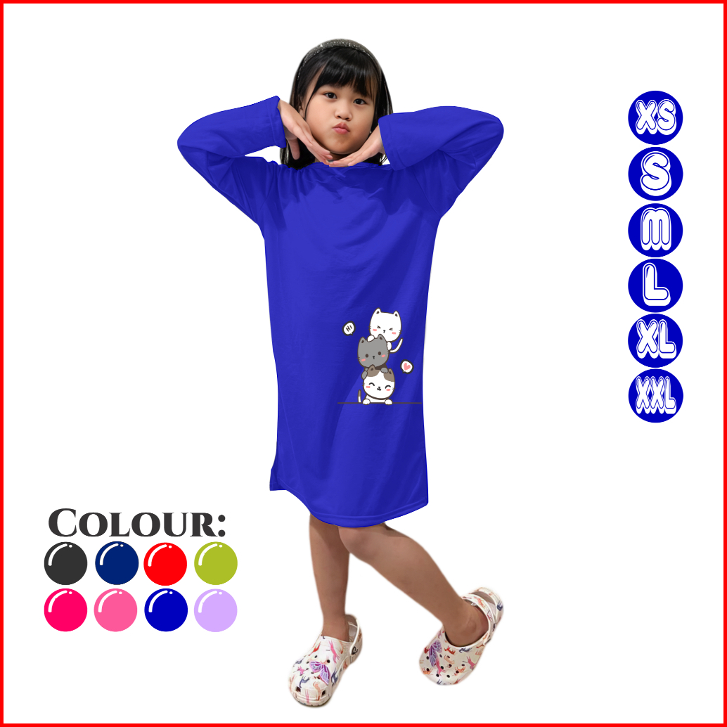 Tunic Anak Perempuan Lengan Panjang Umur 3-15 Tahun - Hi Cat Navy