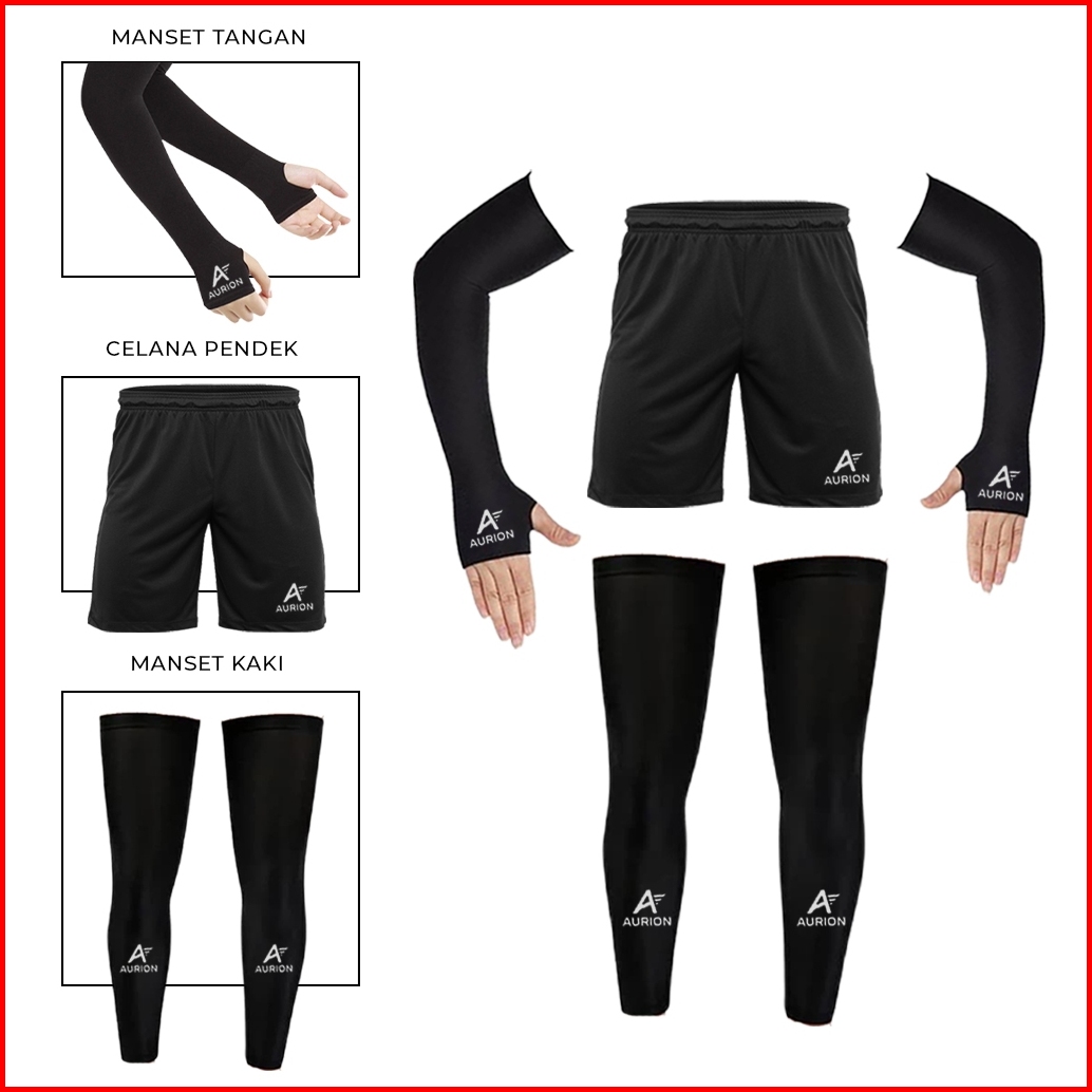 Aurion Setelan Manset Tangan Celana Pendek Olahraga Dan Manset Kaki Pria Wanita
