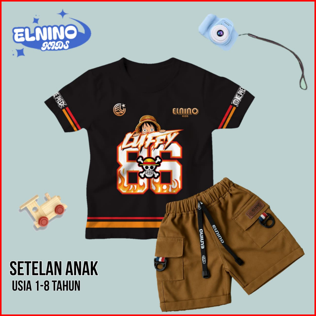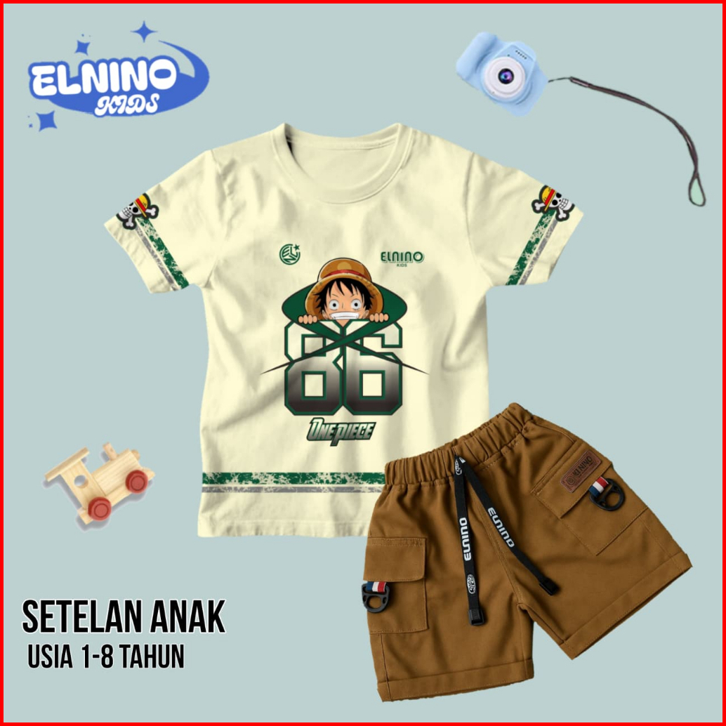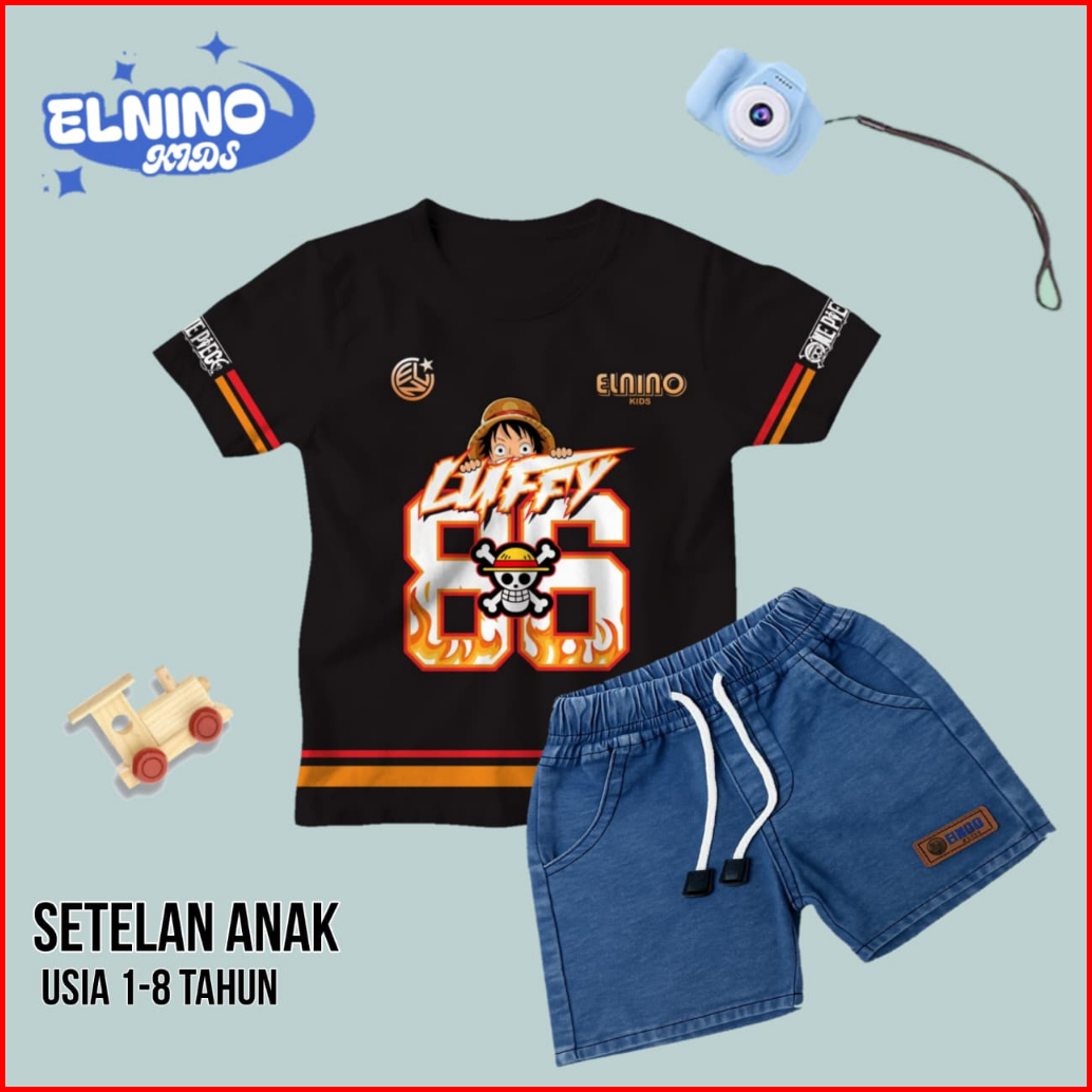 Setelan Anak Kaos Dan Celana Jeans Usia 1-8 Tahun Motif One Piece Series