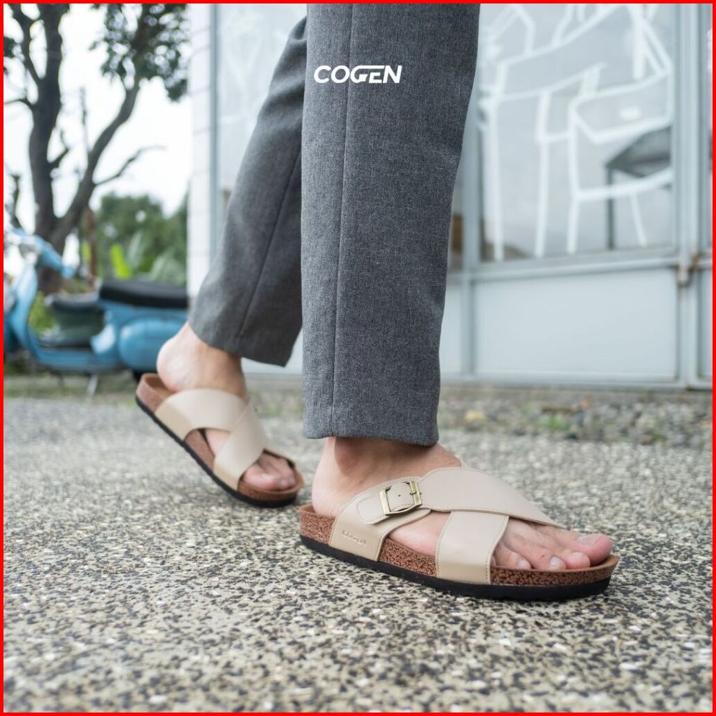 Cogen Sandal Pria Kulit Sendal Slop Birken Vintage - Kastel Creme