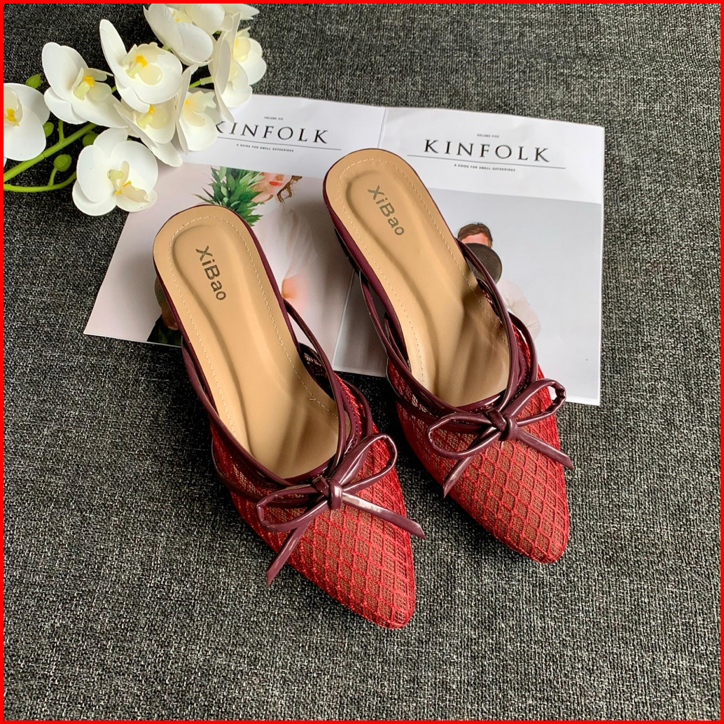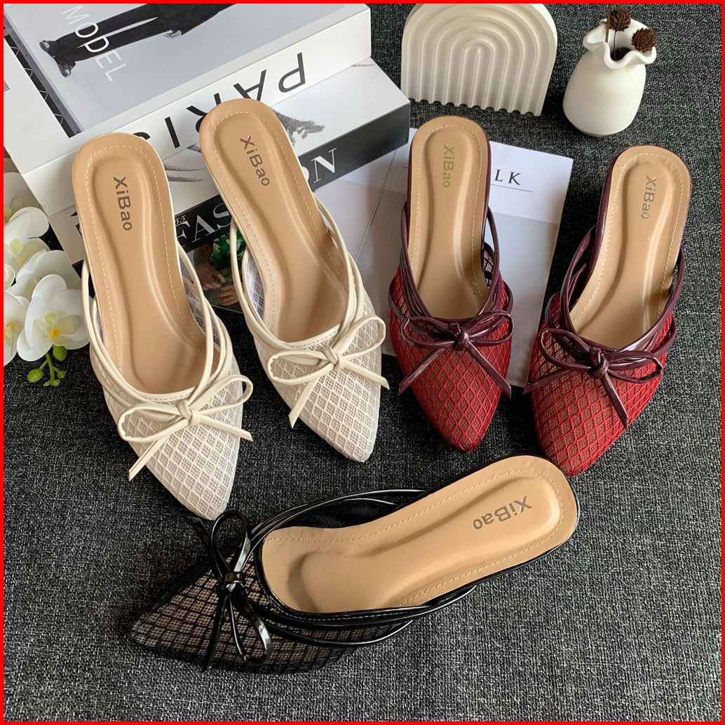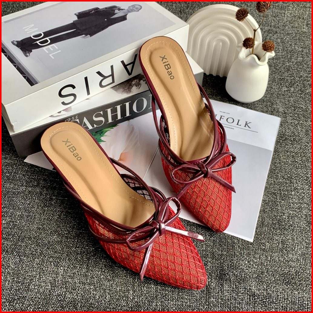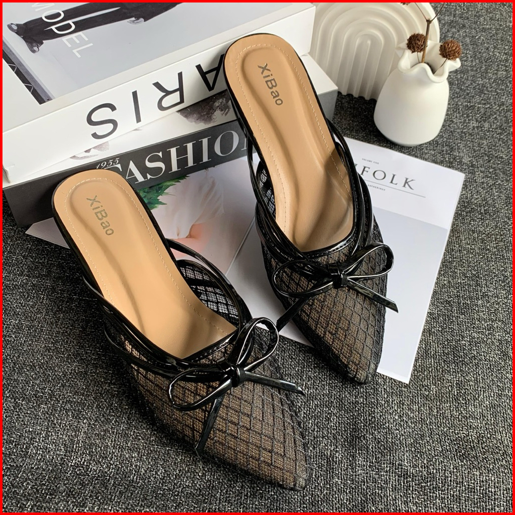 Sandal Sendal Heels Wanita Jaring Hak 3cm - Sandal Wanita Model Selop Slip On Brukat Elegant