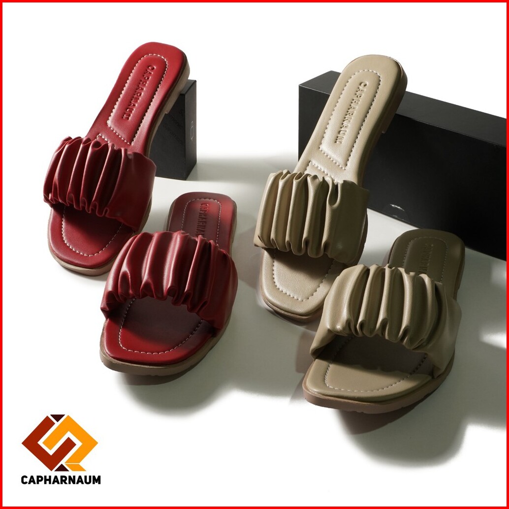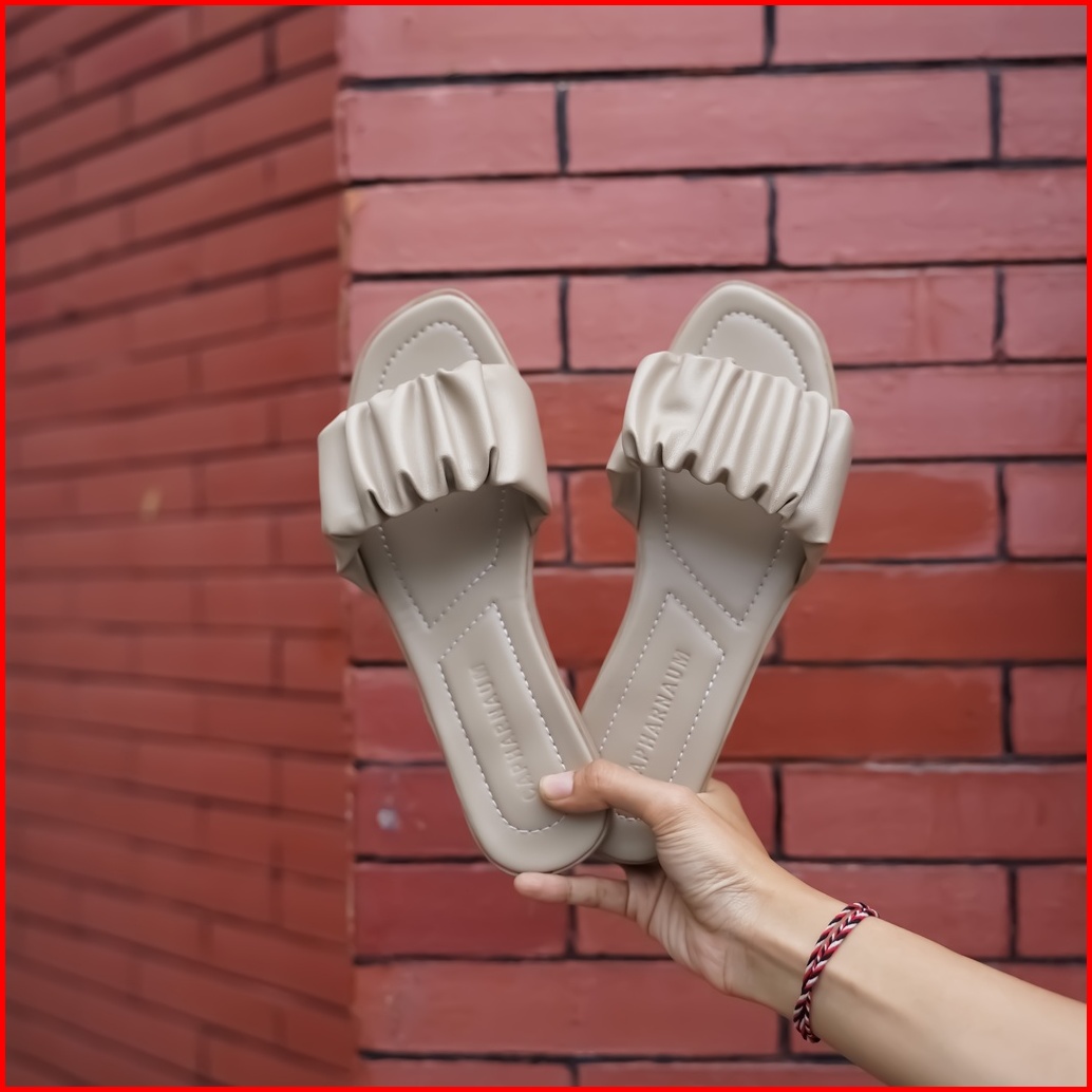 Capharnaum Krt 401 Sandal Slop Kerut Wanita Sandal Flat Selop Kerut Cewek Sol Karet