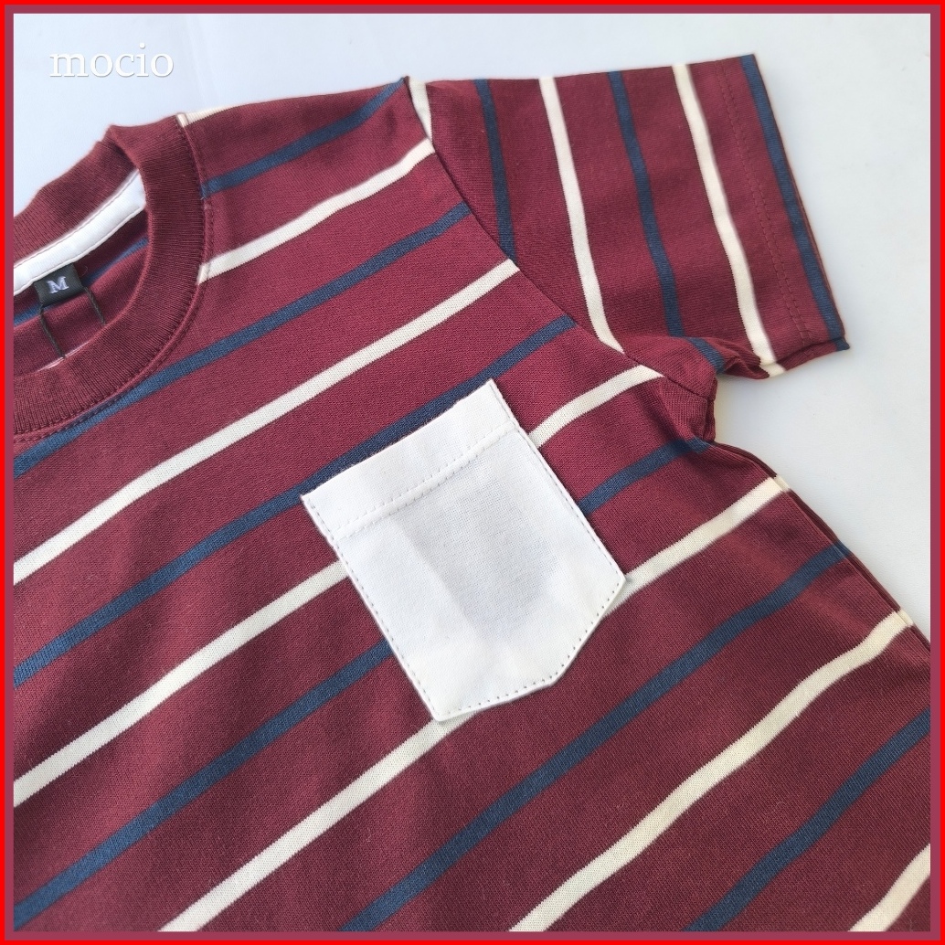 Mocio Maroon Stripe - Usia1-12th - Kaos Distro Anak Laki-laki - Kaos Anak Laki-laki - Kaos Salur Anak - Kaos Stripe Anak