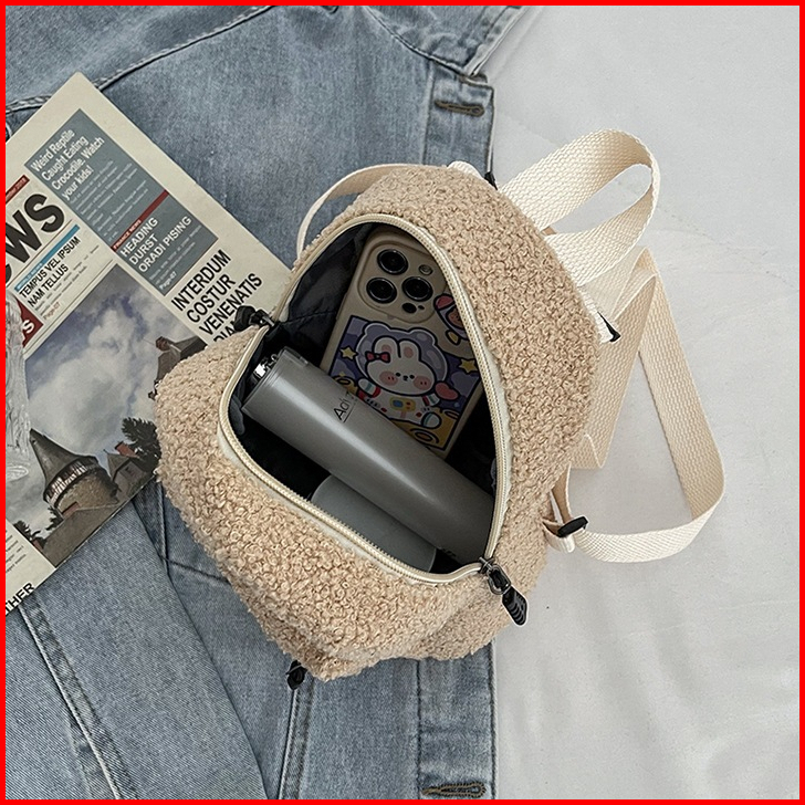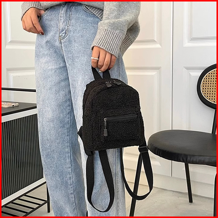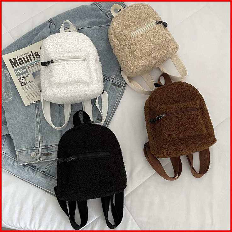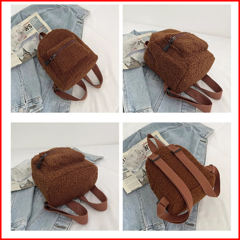 Miko Tas Ransel Backpack Mini Bulu Sekolah Bag Kecil Vintage Viral Wanita Kekinian Remaja Fashion Kuliah Lucu Trend Brow