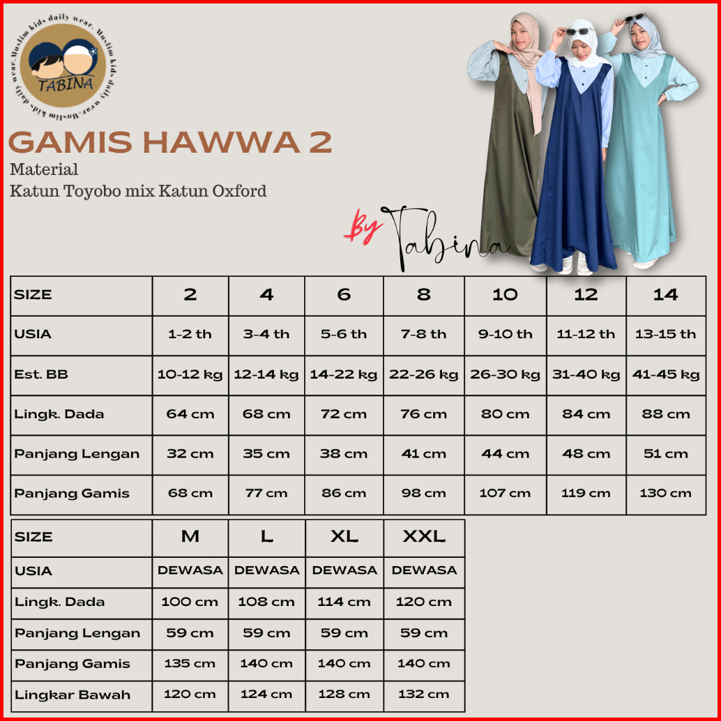Gamis Anak Remaja Perempuan Sampai Wanita Dewasa Tabina Seri Hawwa Ii Usia 2 Hingga Dewasa Xxl