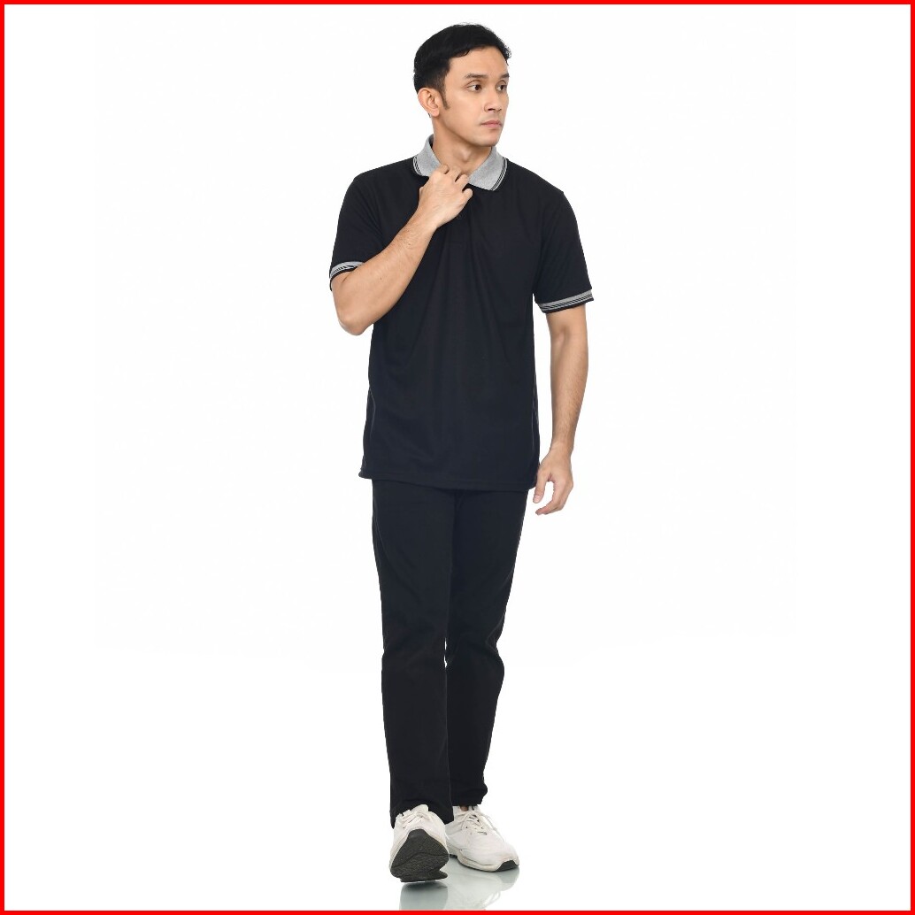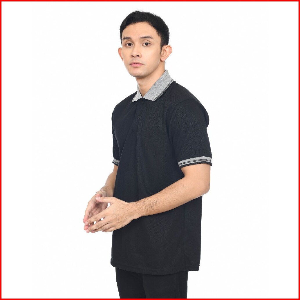 Kaos Polo Pria Kerah Abu List Hitam Kaos Pria Berkerah