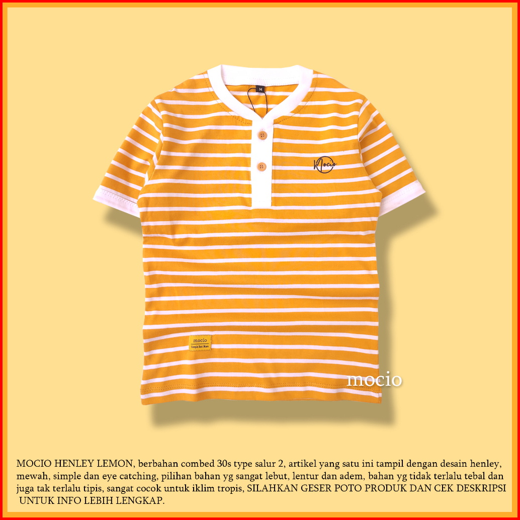 Mocio Henley Lemon - Usia 1-12th - Henley - Kaos Henley Anak - Kaos Salur - Mustard - Kaos Anak Laki-laki - Kaos Kancing