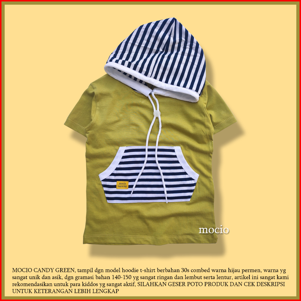 Mocio Candy Green - Usia 1 Sampai 12th - T-shirt Hoodie - Kaos Kupluk Anak - Hijau - Sage Lime
