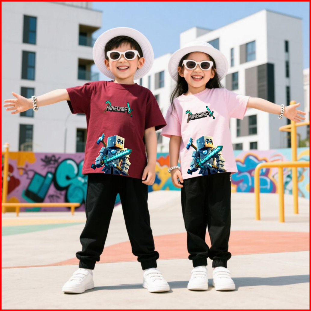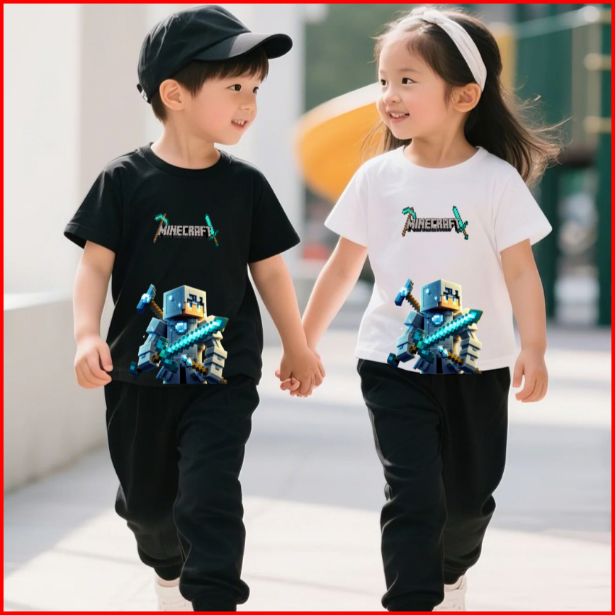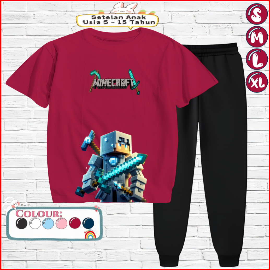 Baju Setelan Anak Kaos Dan Celana Jogger 5-15 Tahun Motif Hero Minecraft