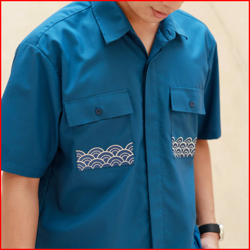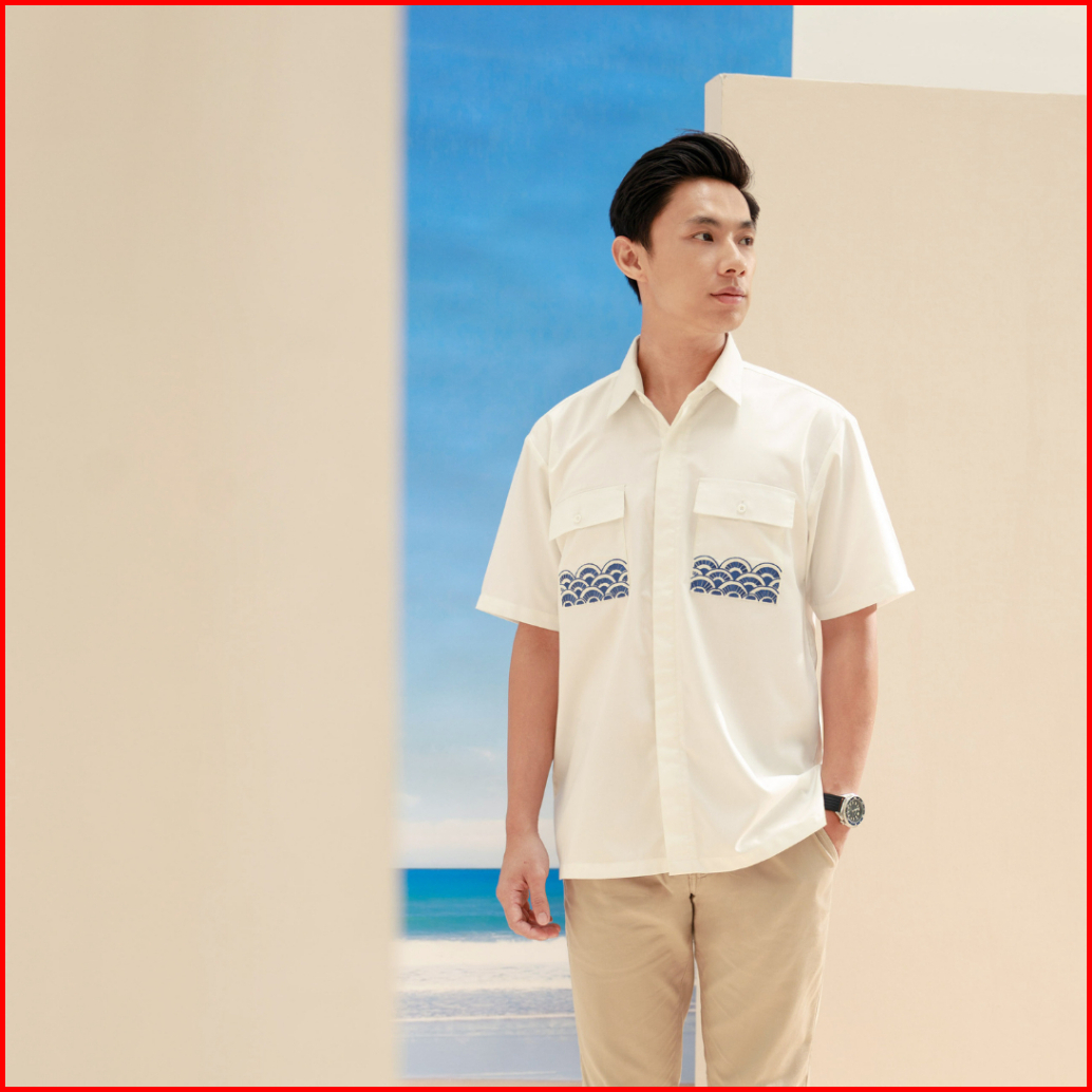 Kemeja Pria Lengan Pendek Premium Bordir Kagerou White Shirt By Kinkami