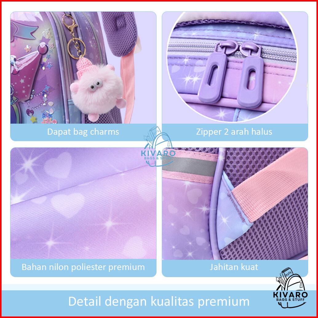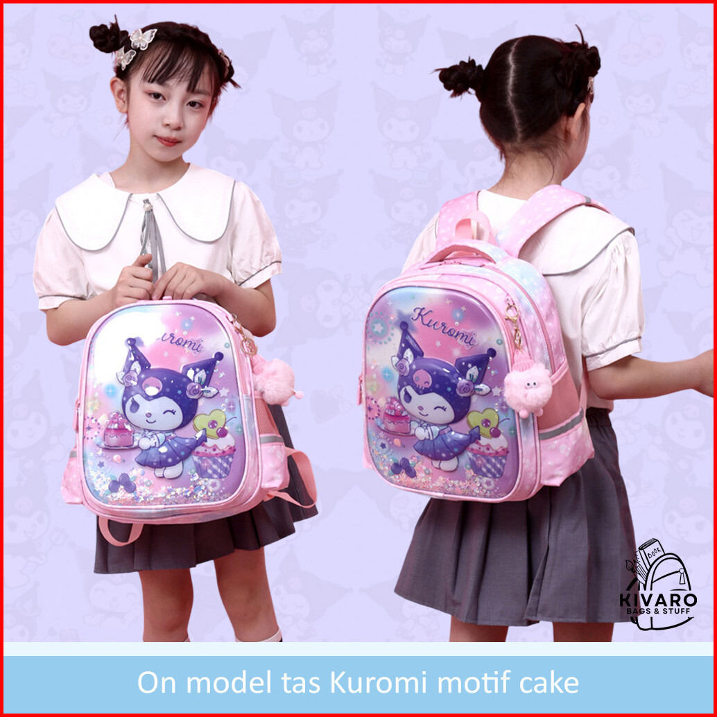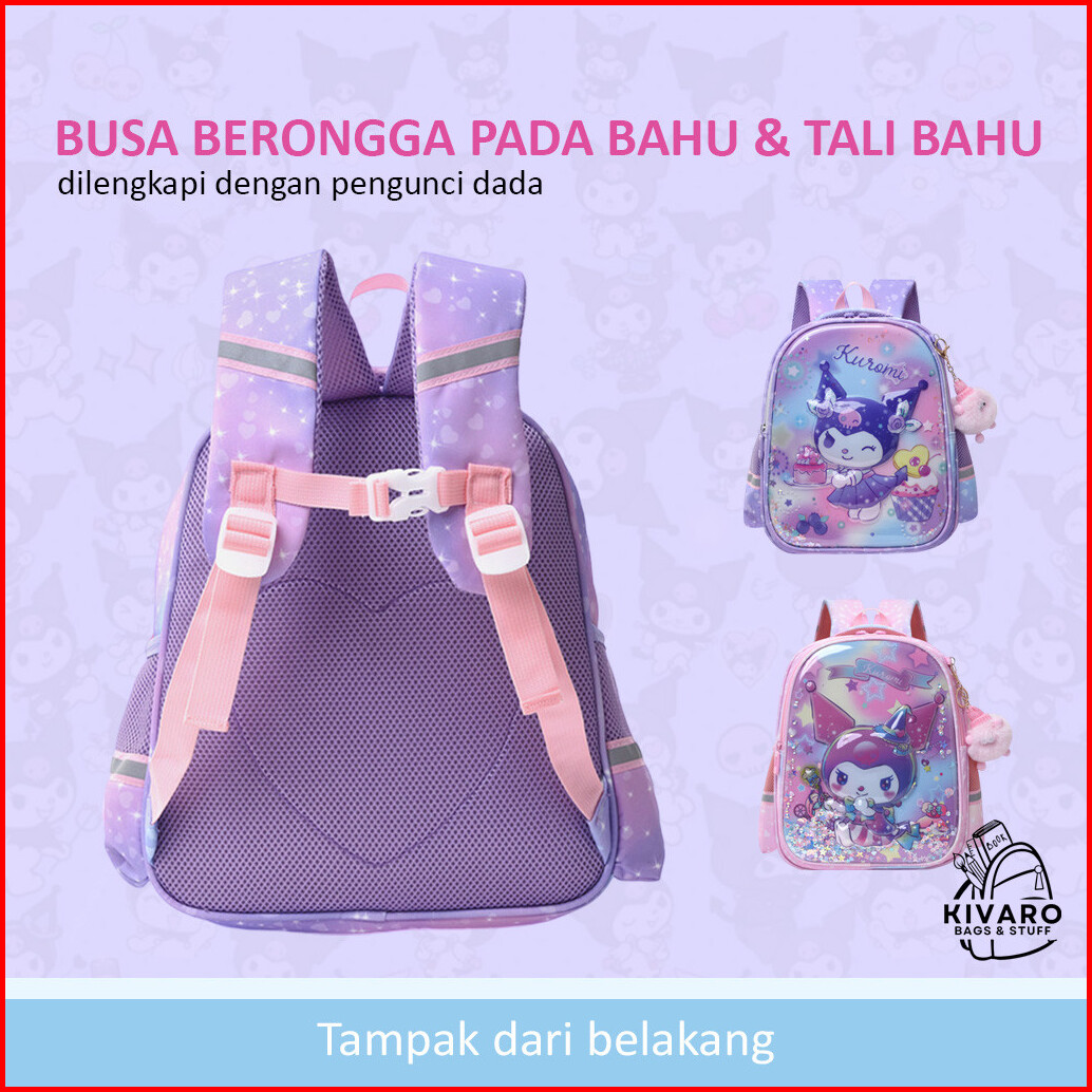 Tas Ransel Kuromi 3d Timbul Anak Sd Perempuan 35cm Glitter Bonus Bag Charms 0889 Kivaro