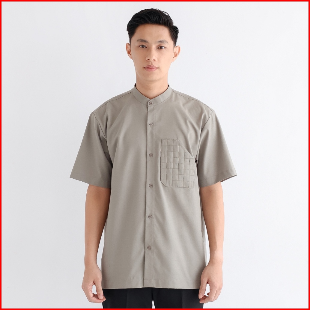 Kemeja Pria Koko Lengan Pendek Premium Motif Anyaman Baju Atasan Oru Shirt Beige By Kinkami