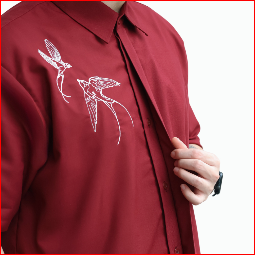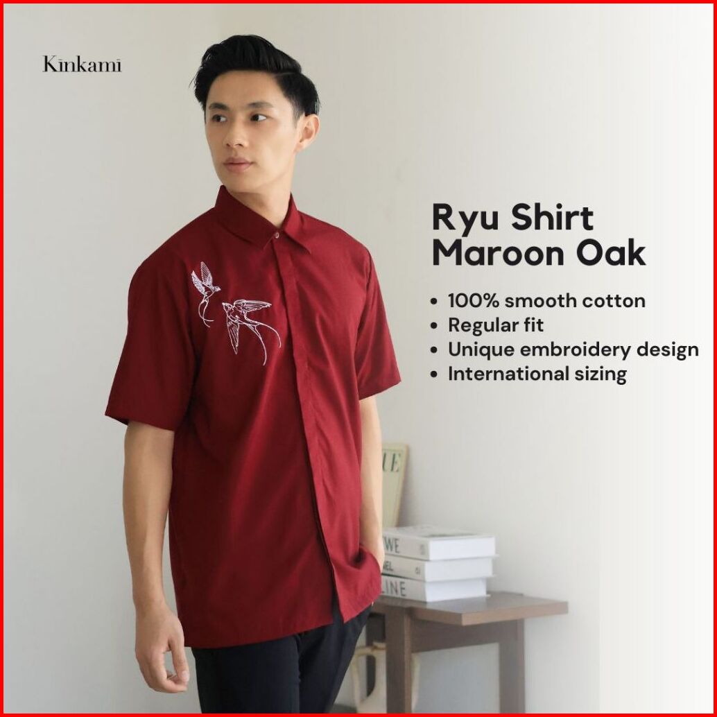 Kemeja Pria Lengan Pendek Premium Motif Bordir Binatang Baju Atasan Ryu Maroon Oak By Kinkami