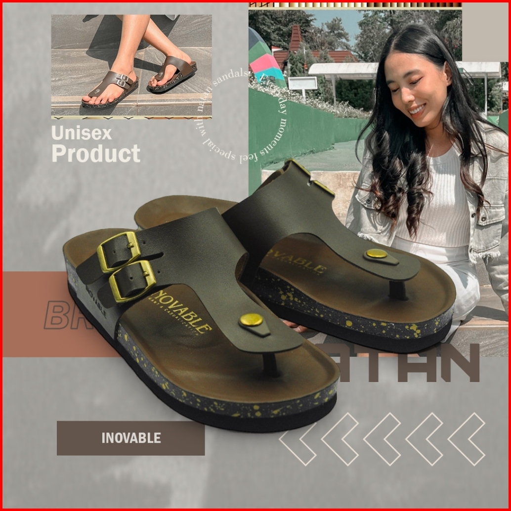 Inovable Sandal Casual Pria Wanita Ringan Nyaman Anti Slip -natan Ii Full Brown