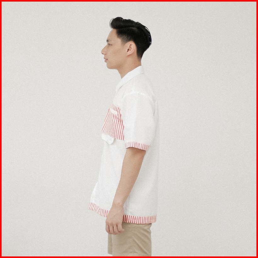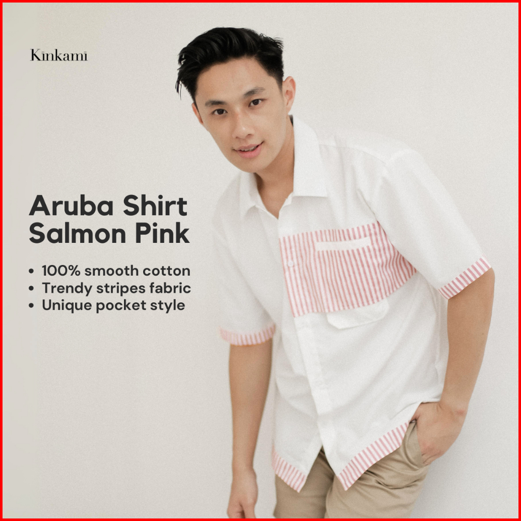 Kemeja Pria Lengan Pendek Premium Motif Garis-garis Stripes Aruba Salmon Pink By Kinkami