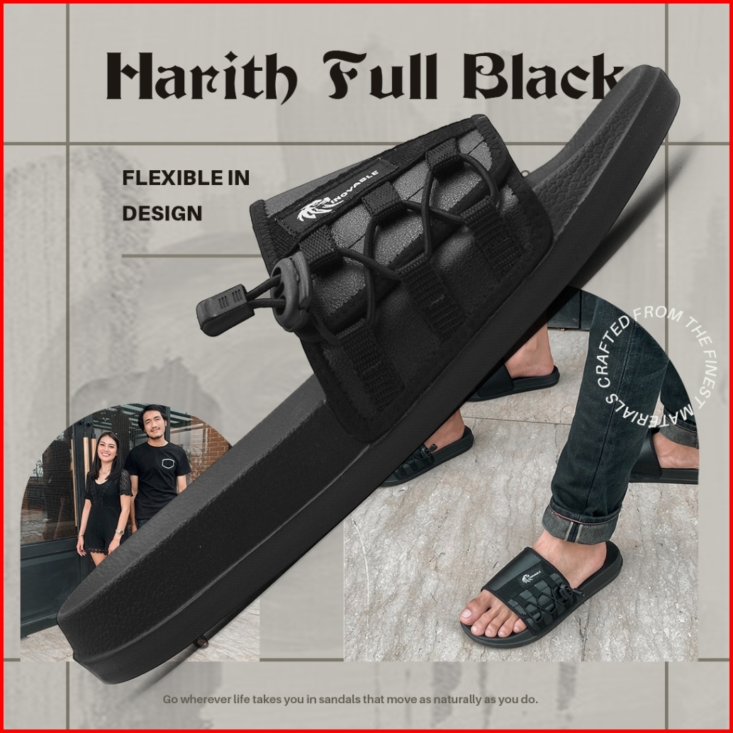 Inovable Sandal Slide Slop Pria Wanita Ringan Nyaman Anti Slip - Harith Full Black