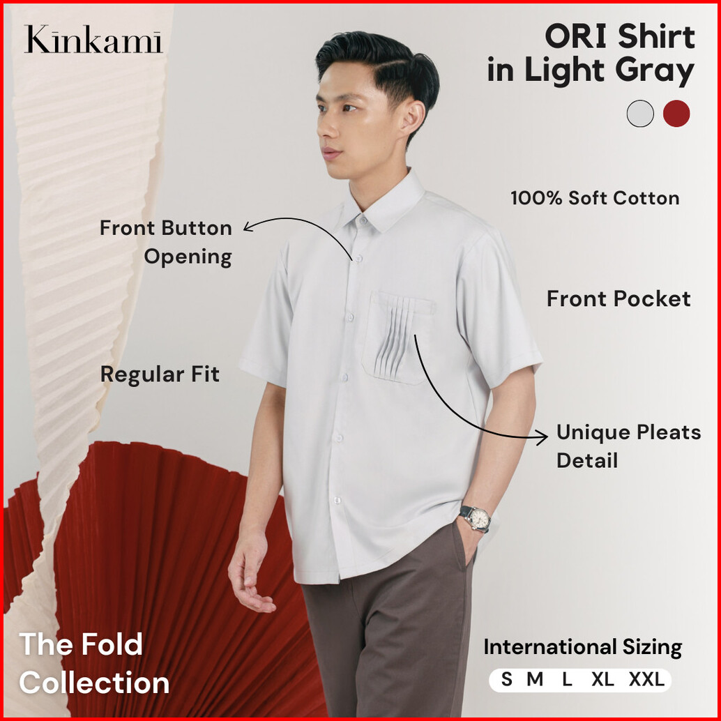 Kemeja Pria Lengan Pendek Premium Ori Shirt Light Gray By Kinkami
