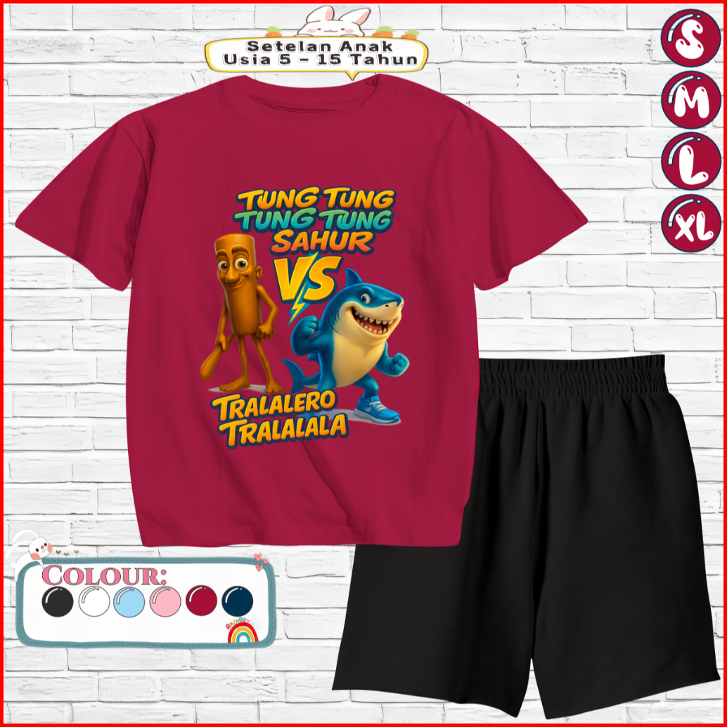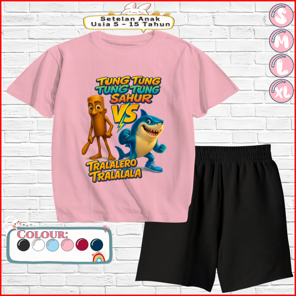Setelan Kaos Anak Celana Pendek 5-15 Tahun Motif Tungtung Vs Tralalero
