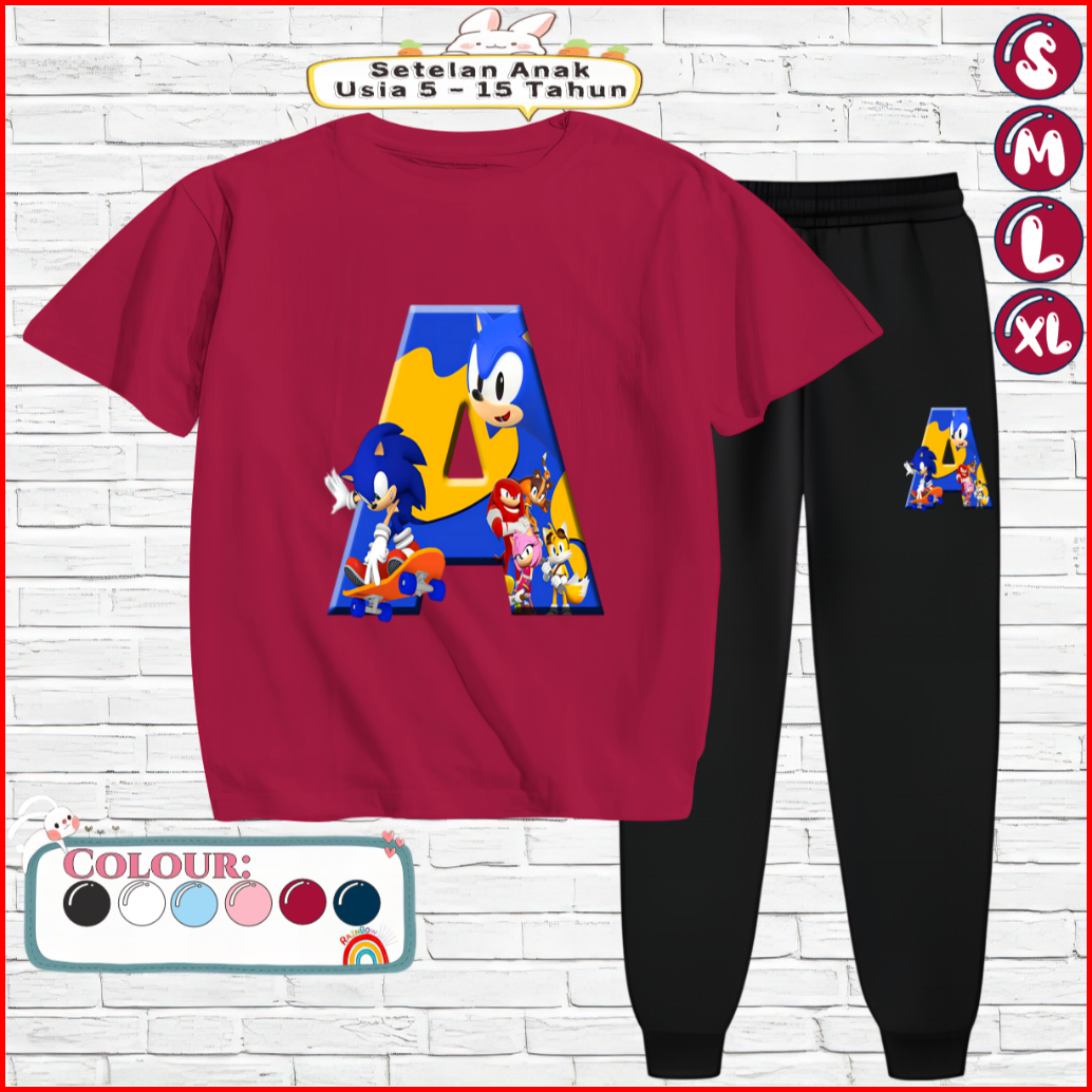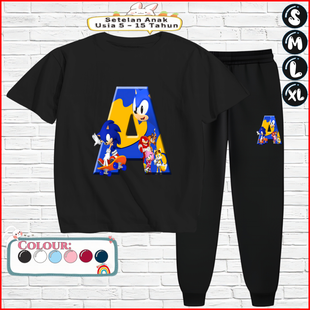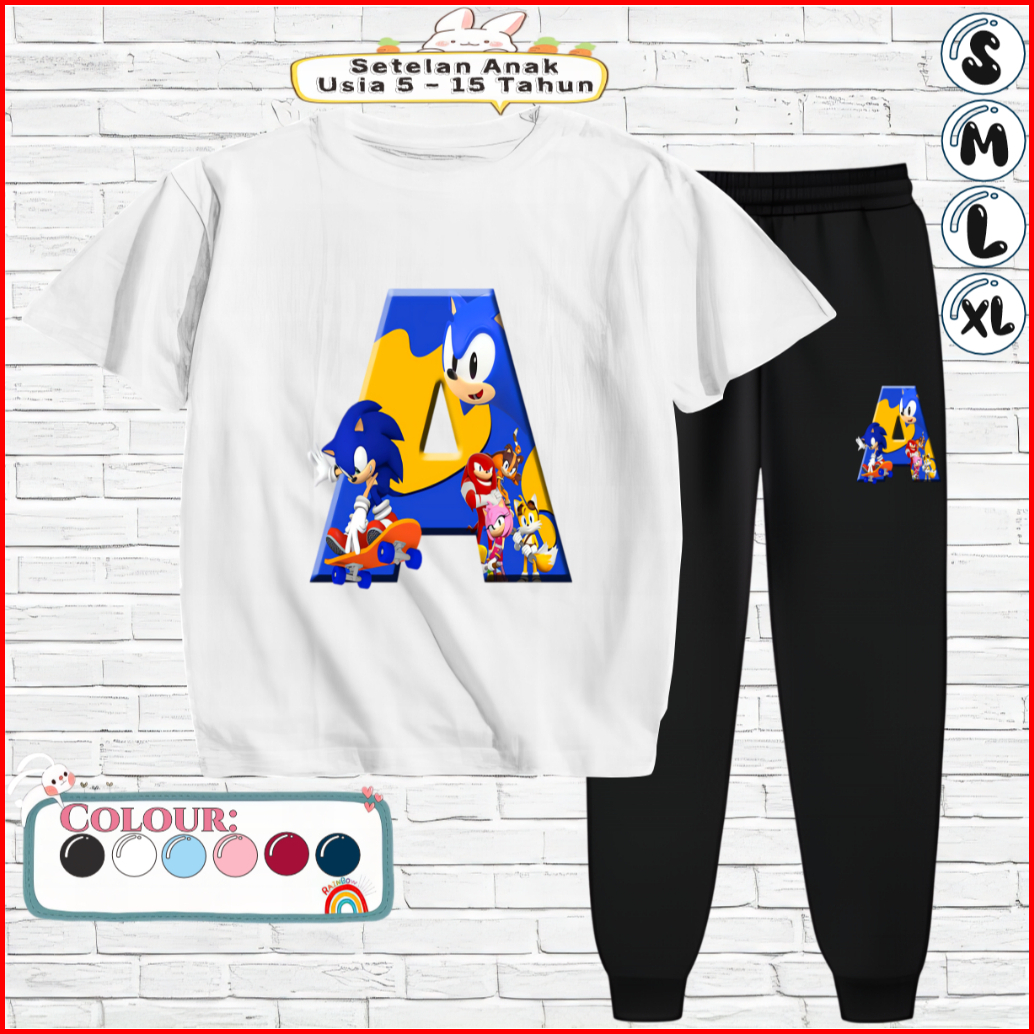 Setelan Kaos Anak Celana Jogger 5-15 Tahun Motif Sonic A